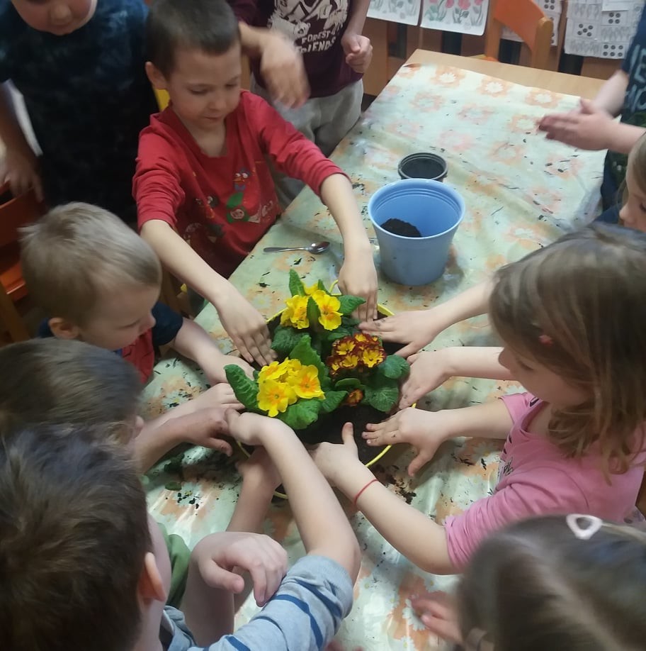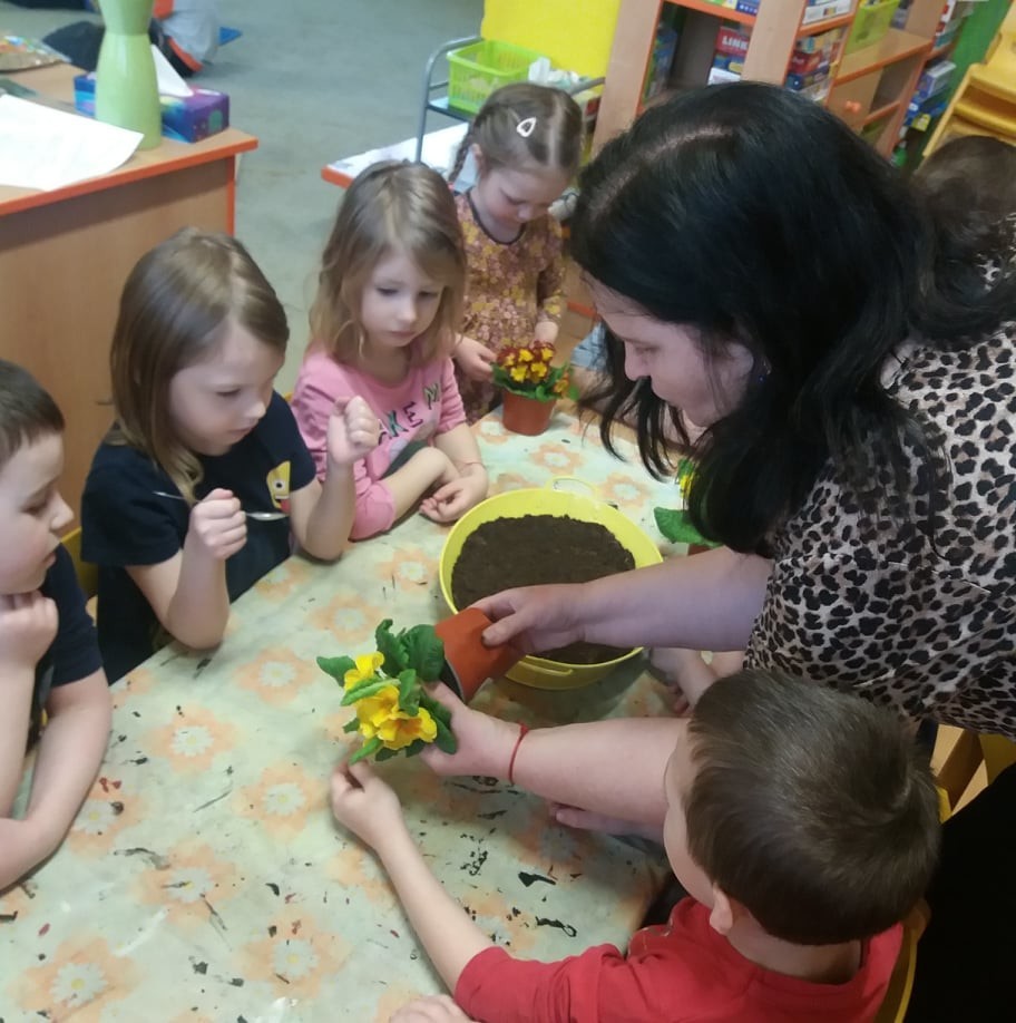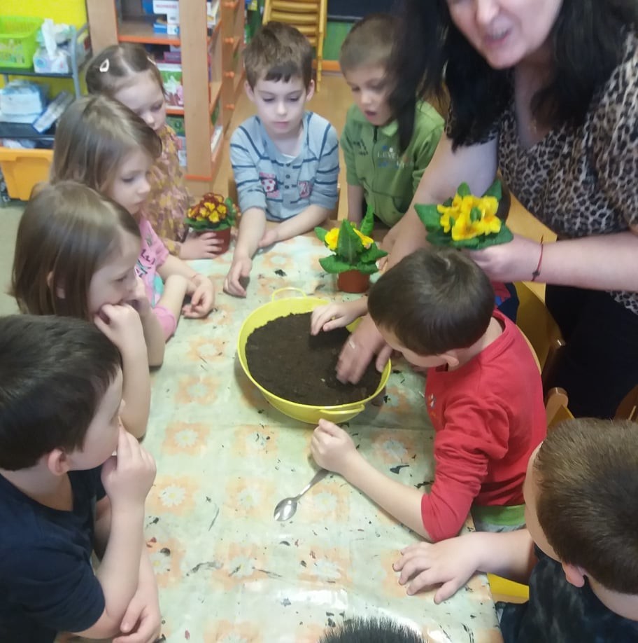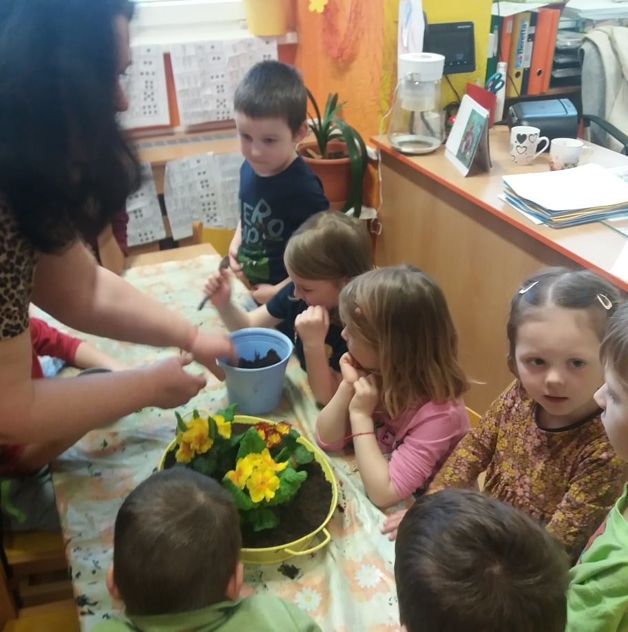 Sázení jarních kytiček-broučci
