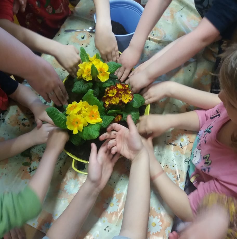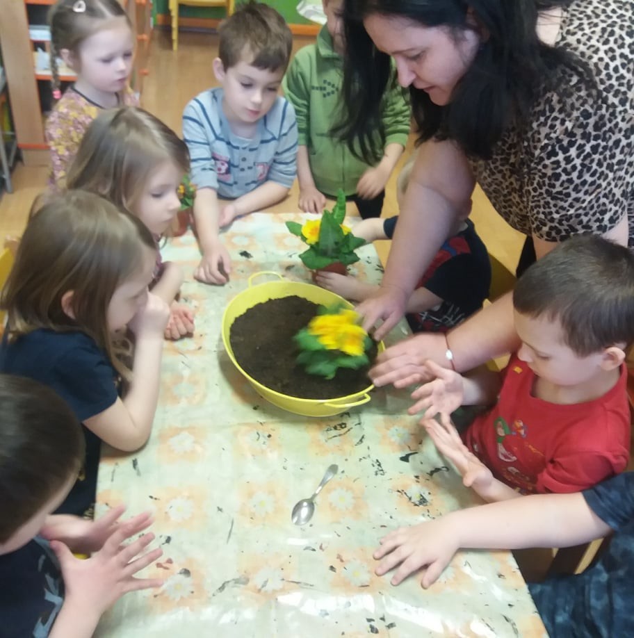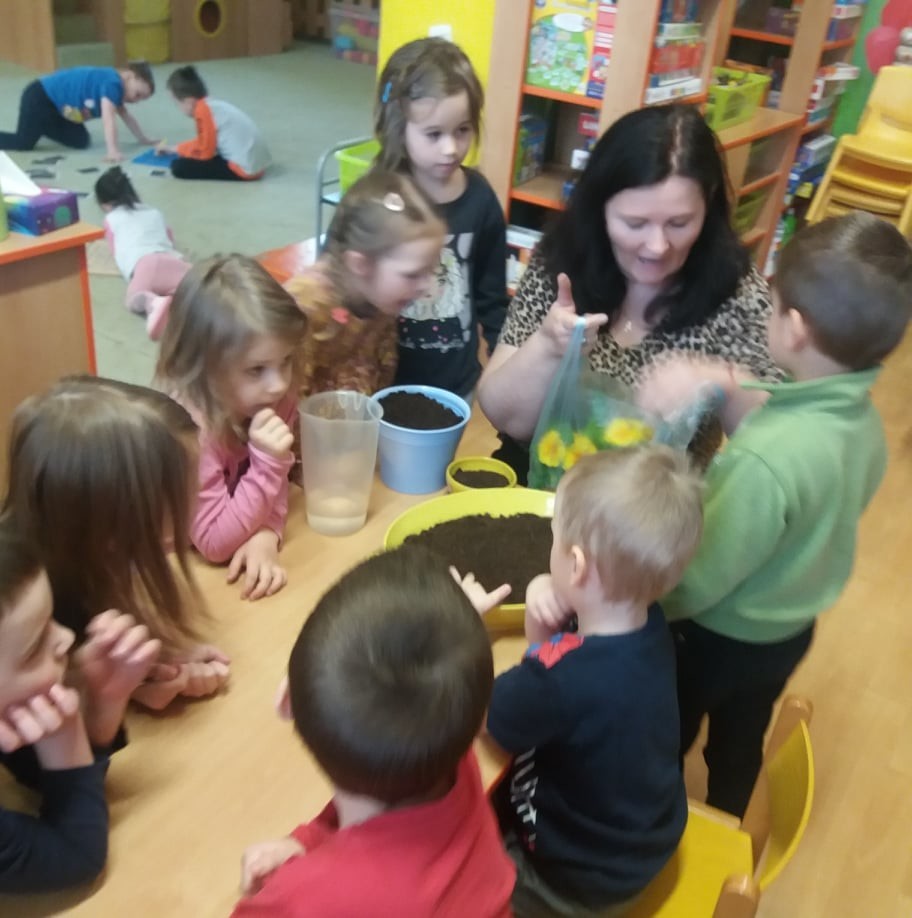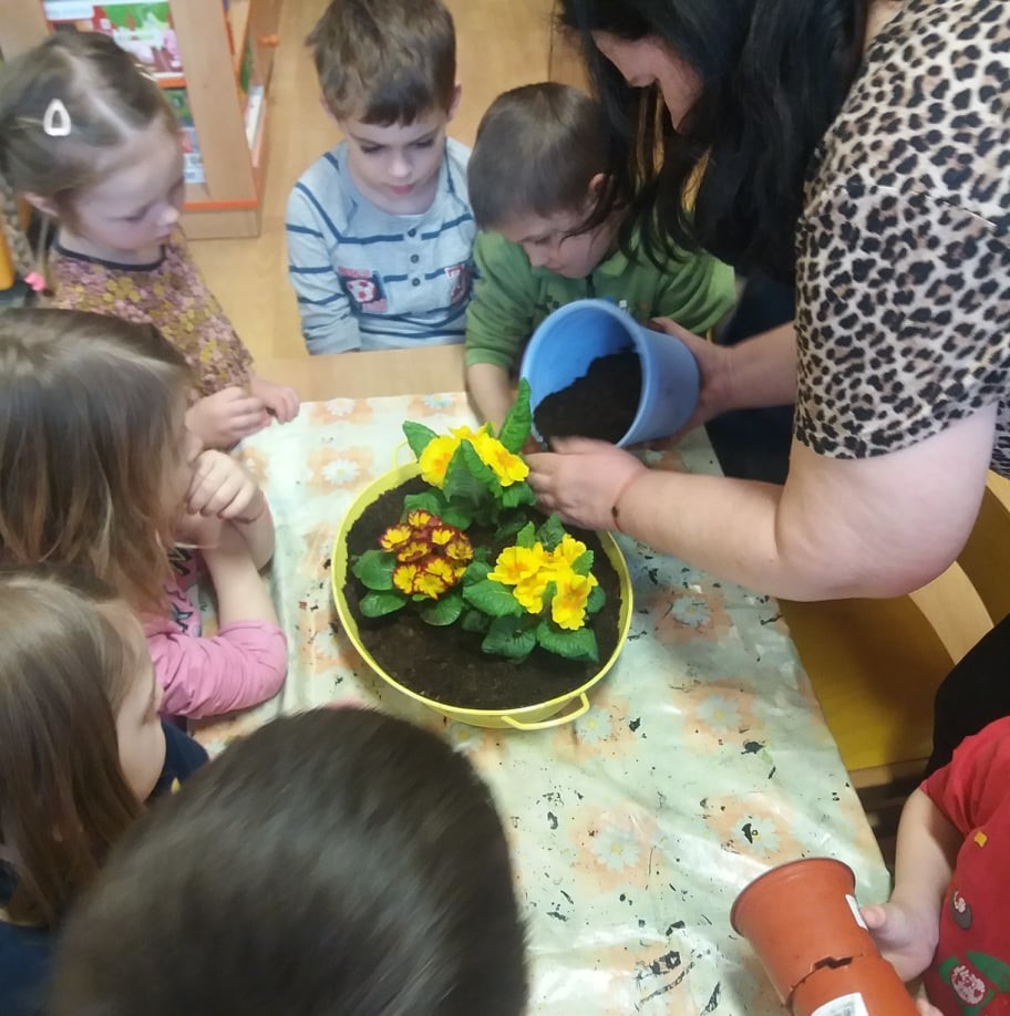 Sázení jarních kytiček-broučci