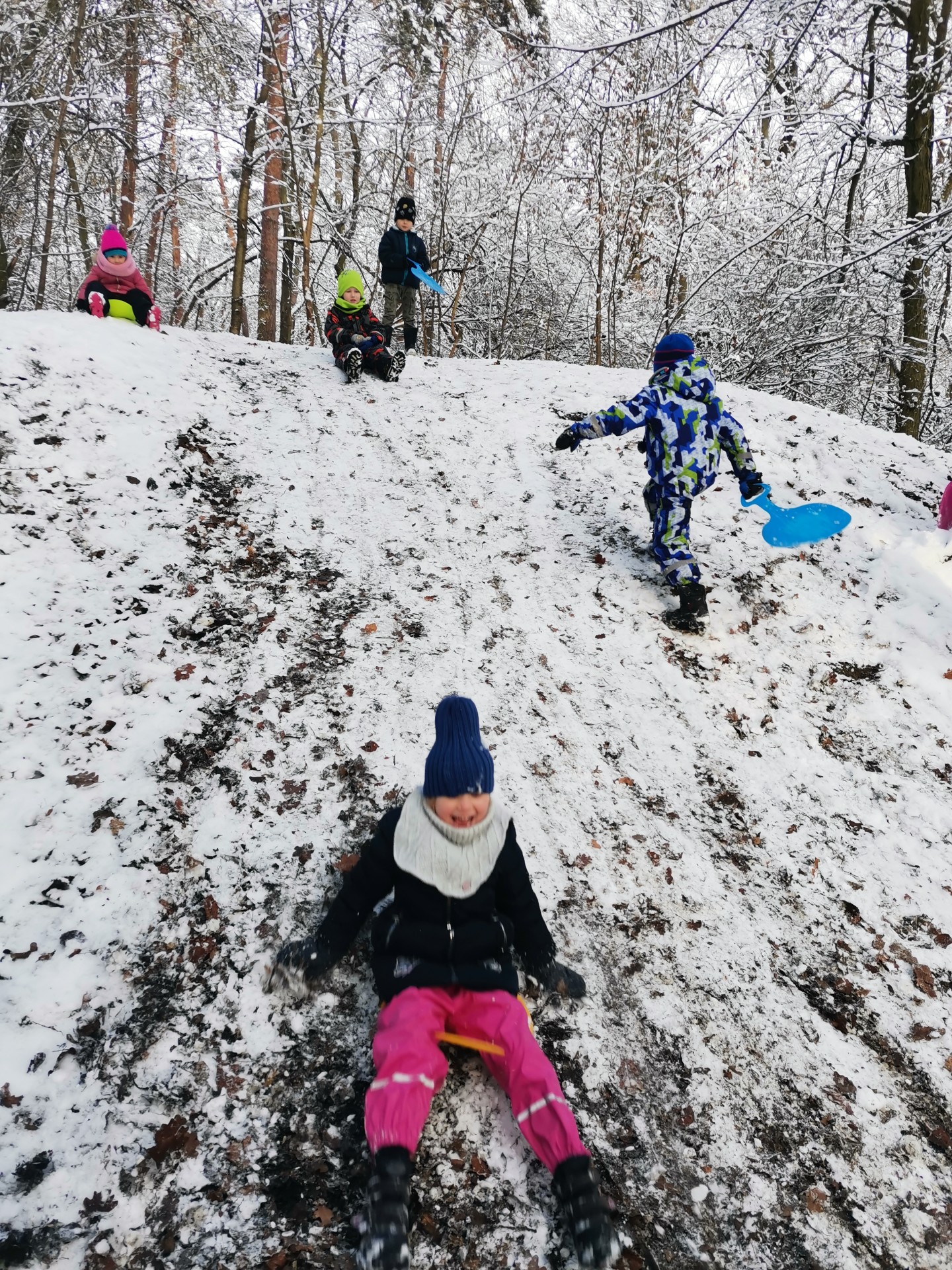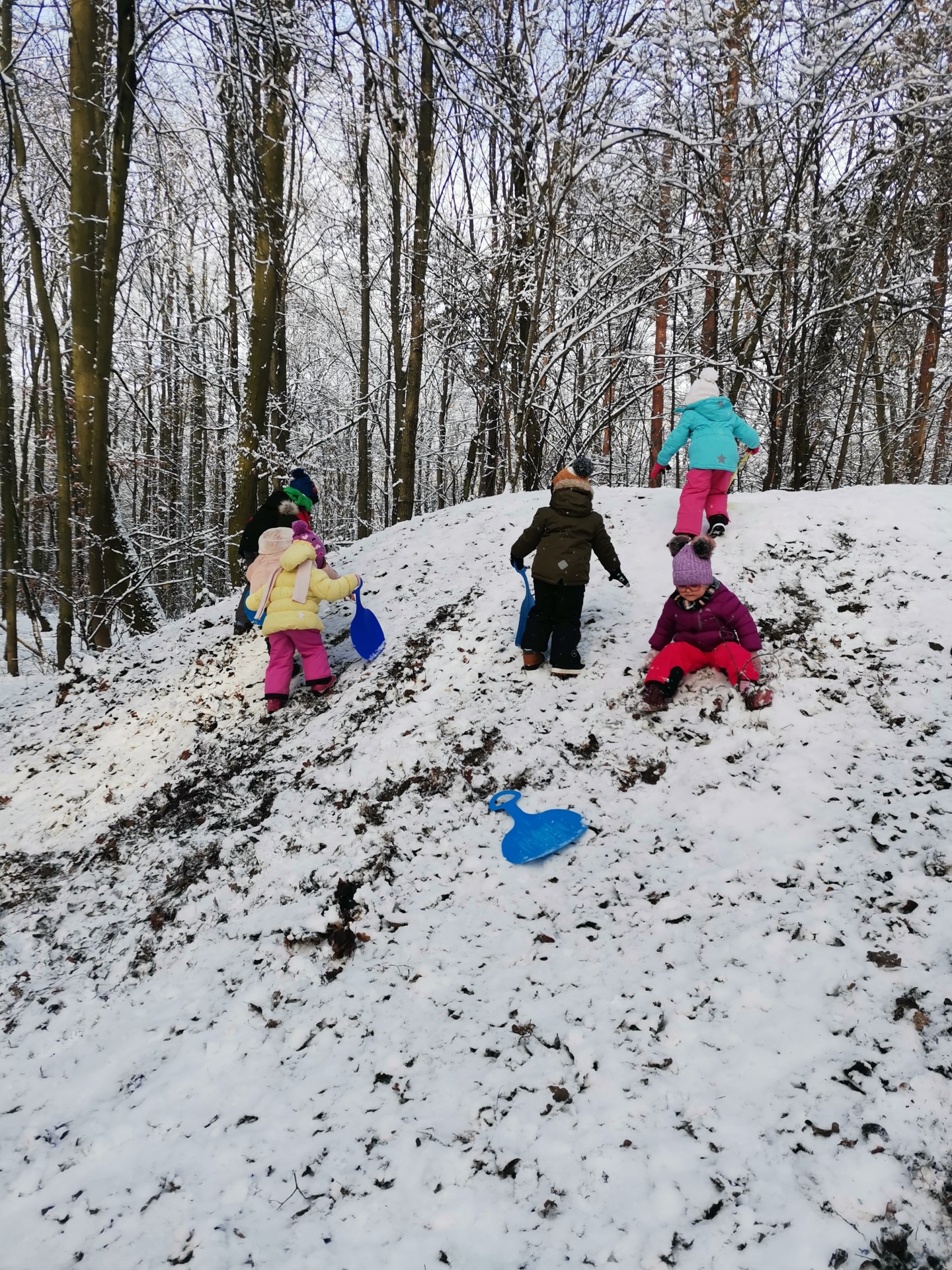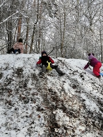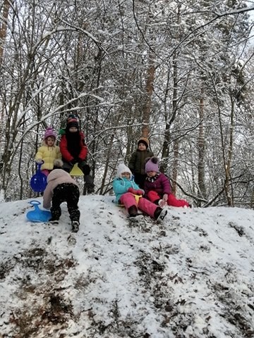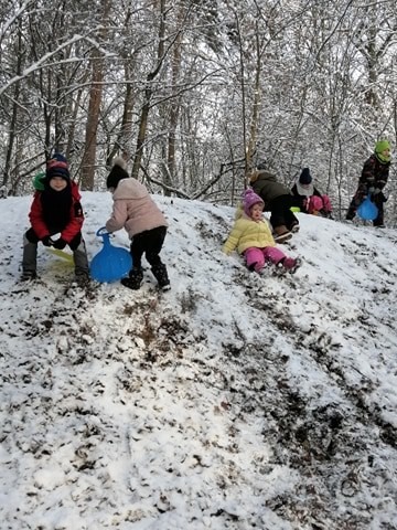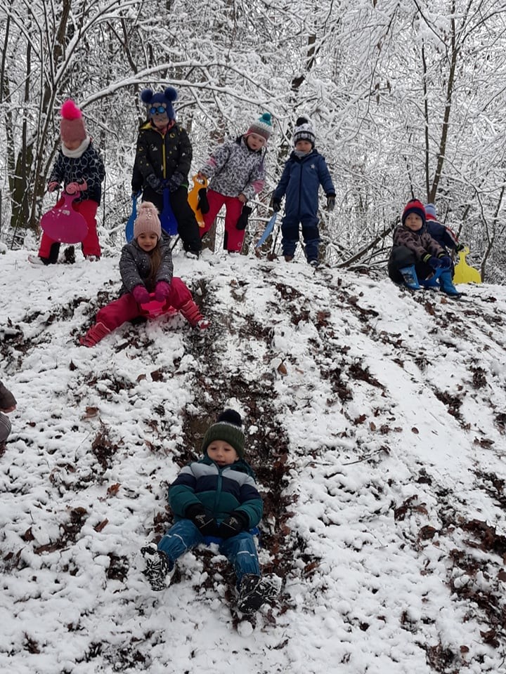 Vzali jsme lopaty a užili si první sníh...další dny jsme bobovali, koulovali se i stavěli sněhuláky...