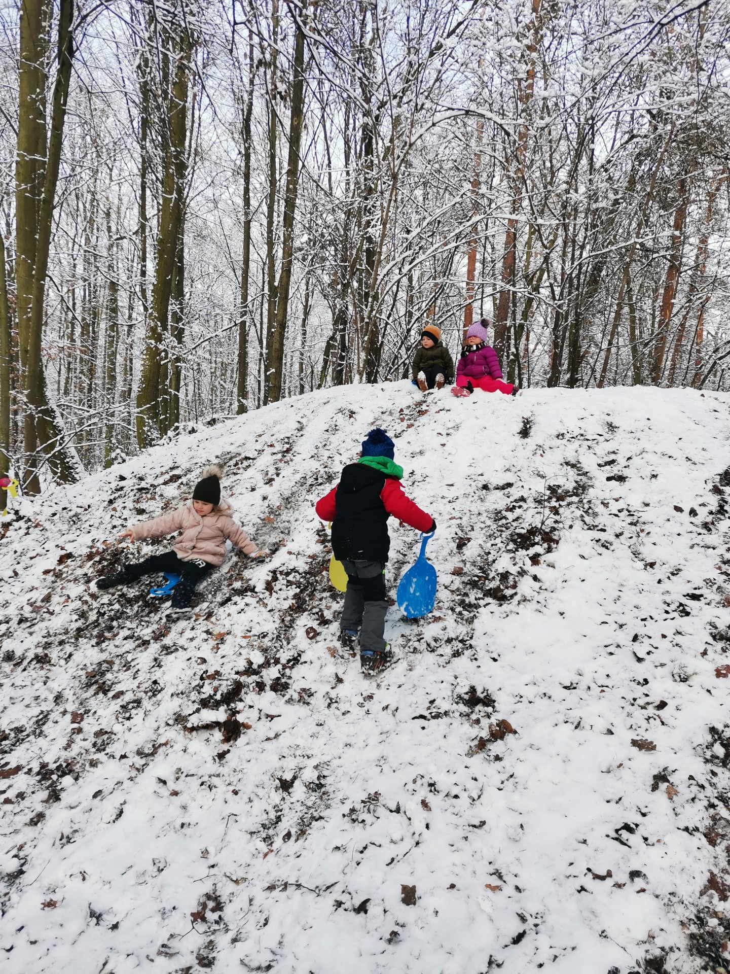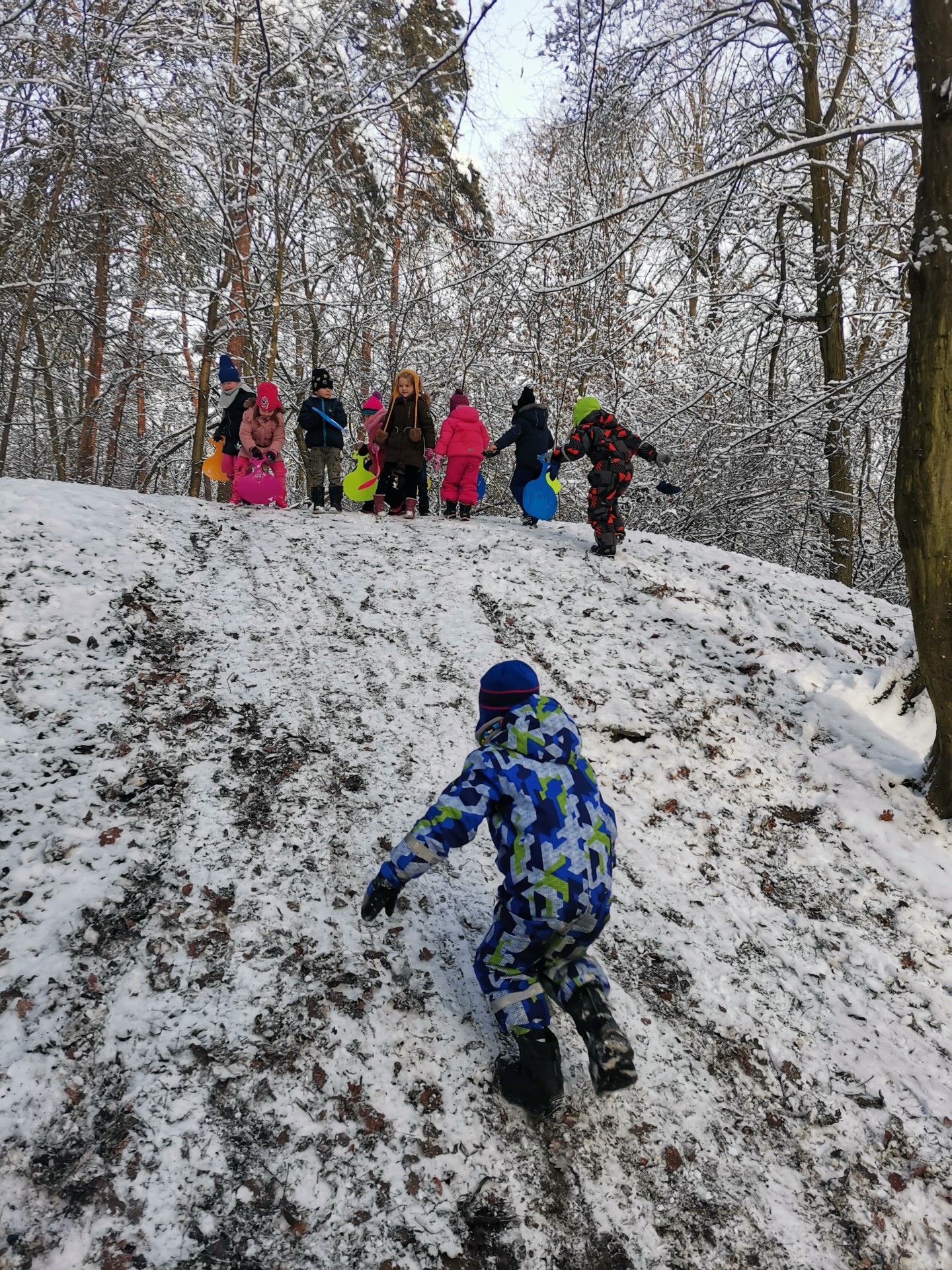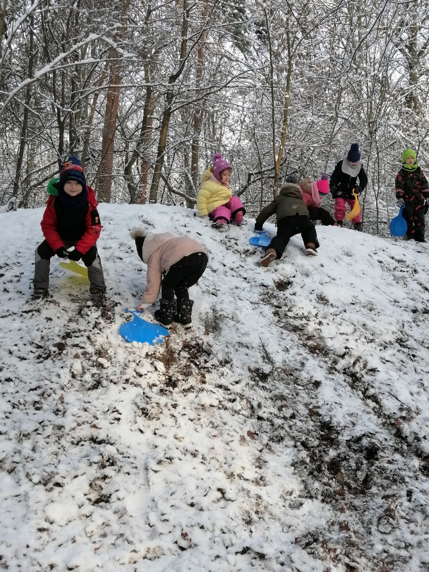 Vzali jsme lopaty a užili si první sníh...další dny jsme bobovali, koulovali se i stavěli sněhuláky...