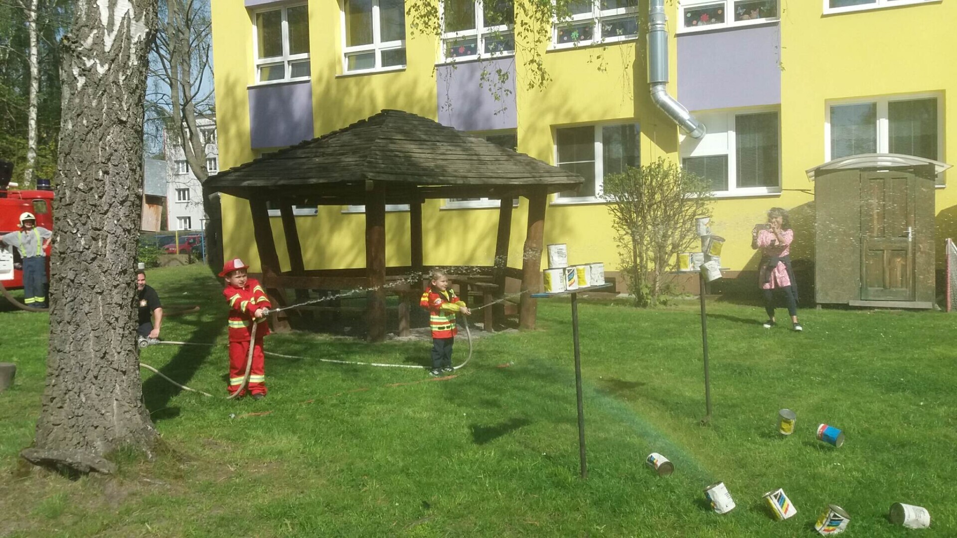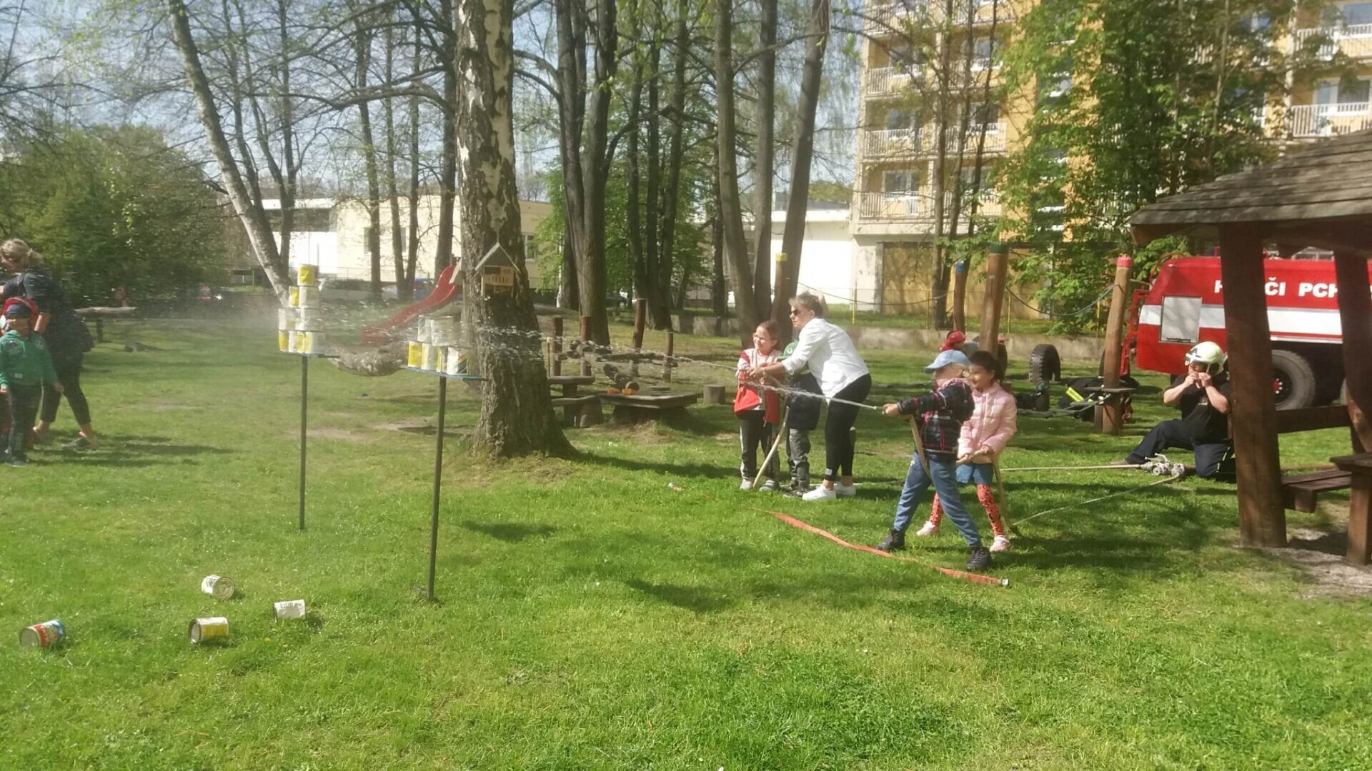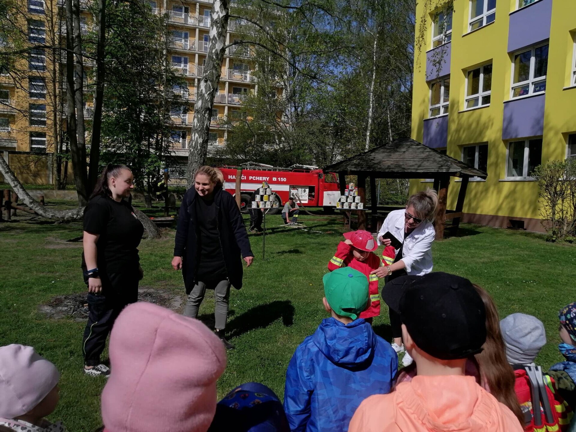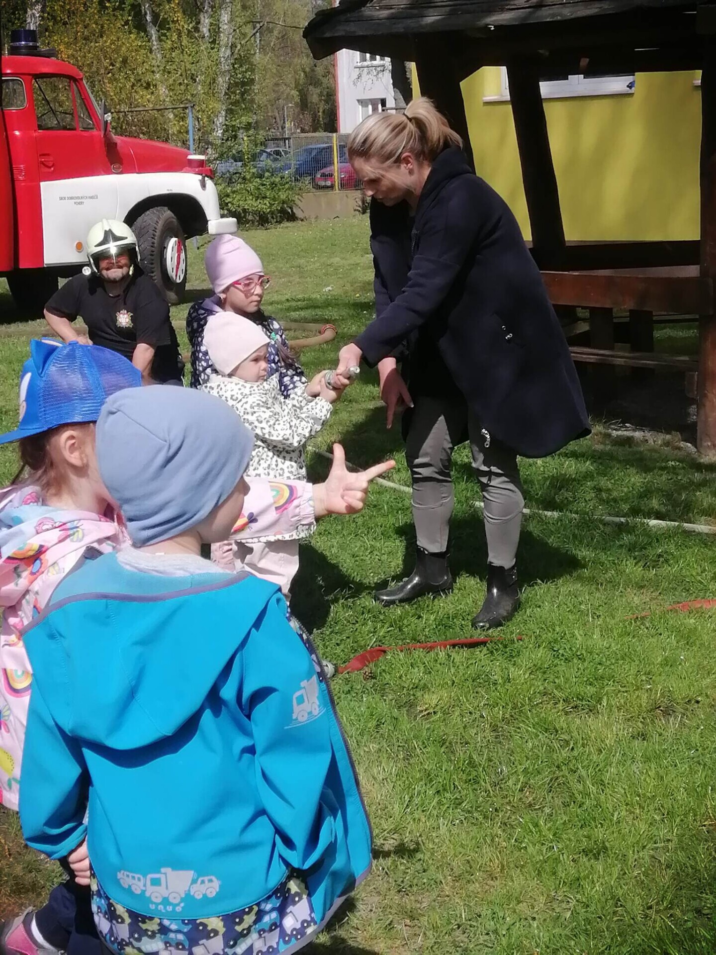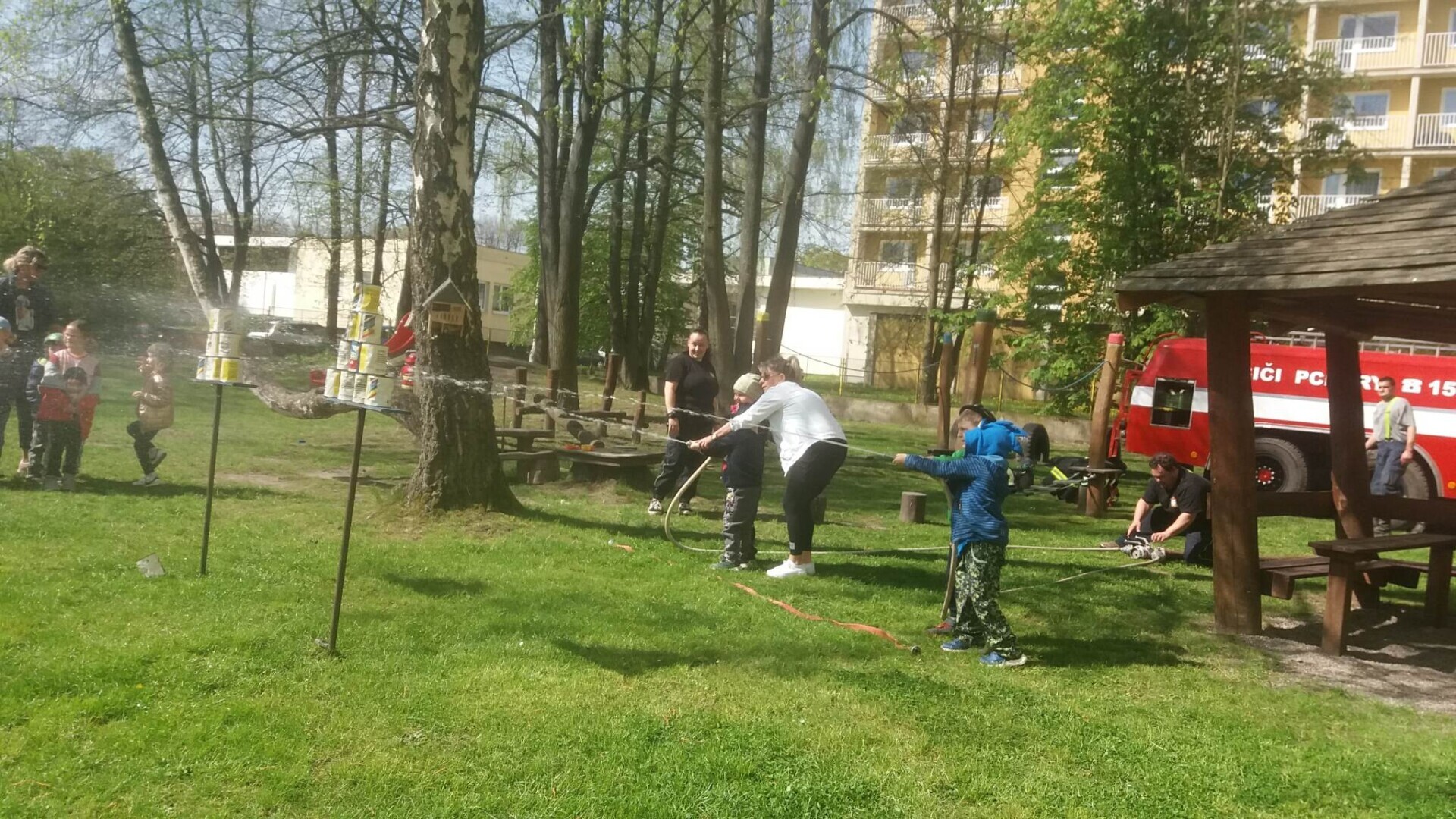 Den hasičů- dobrovolní hasiči z Pcher na školní zahradě