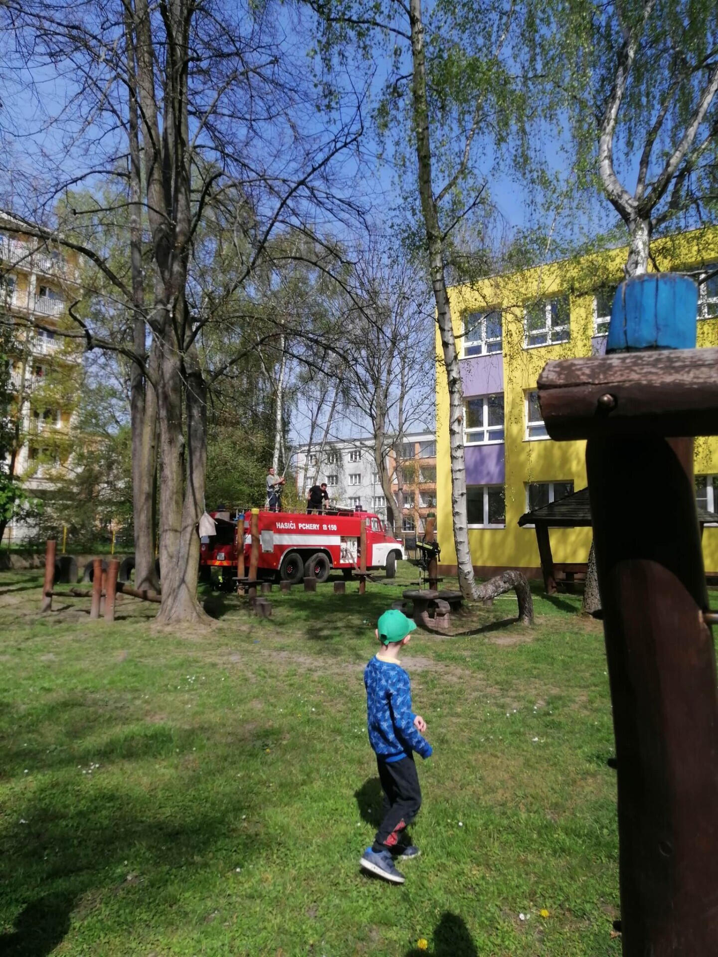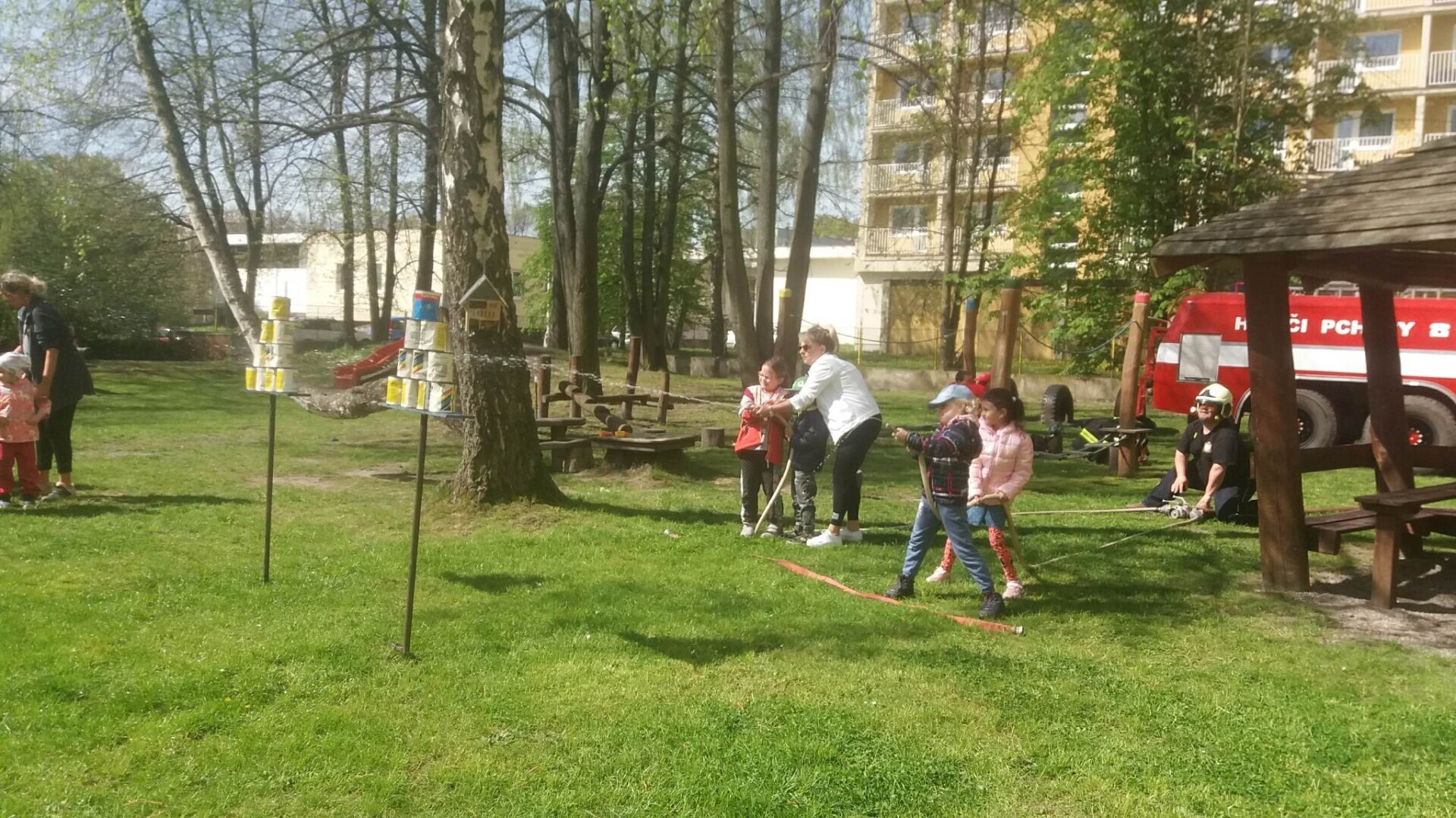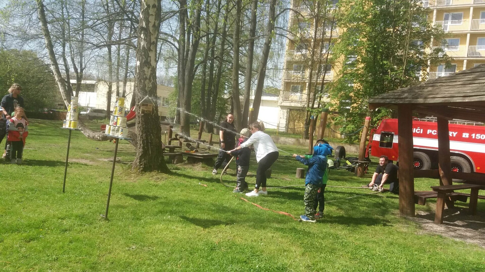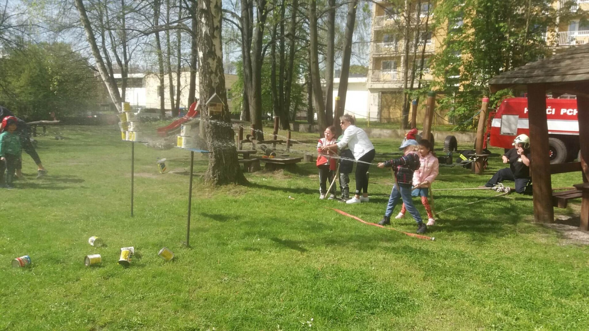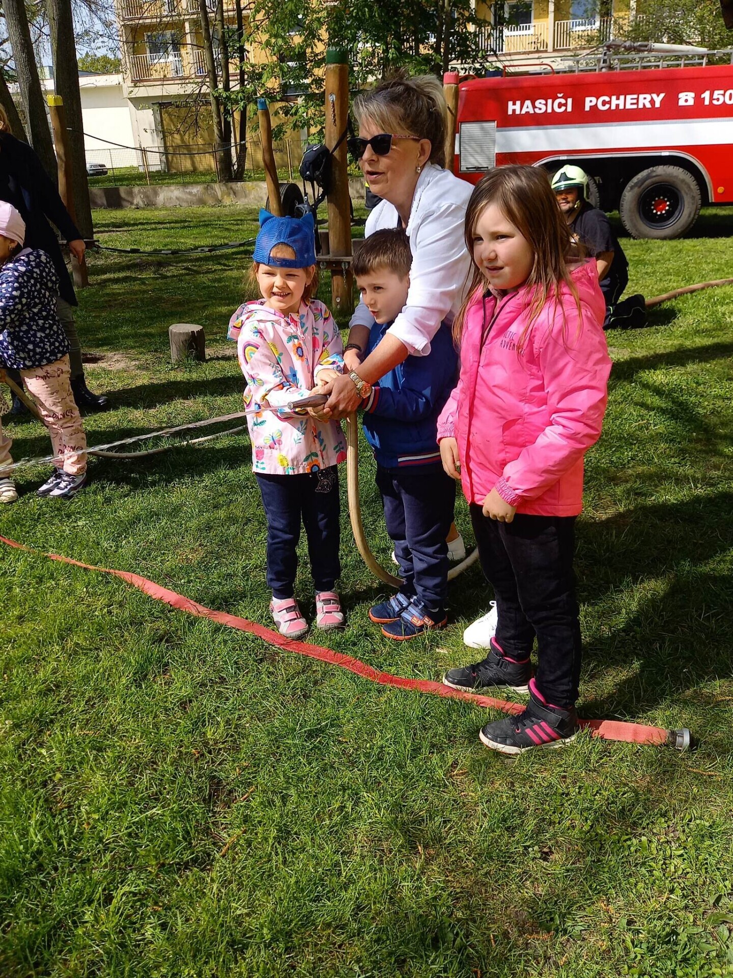 Den hasičů- dobrovolní hasiči z Pcher na školní zahradě