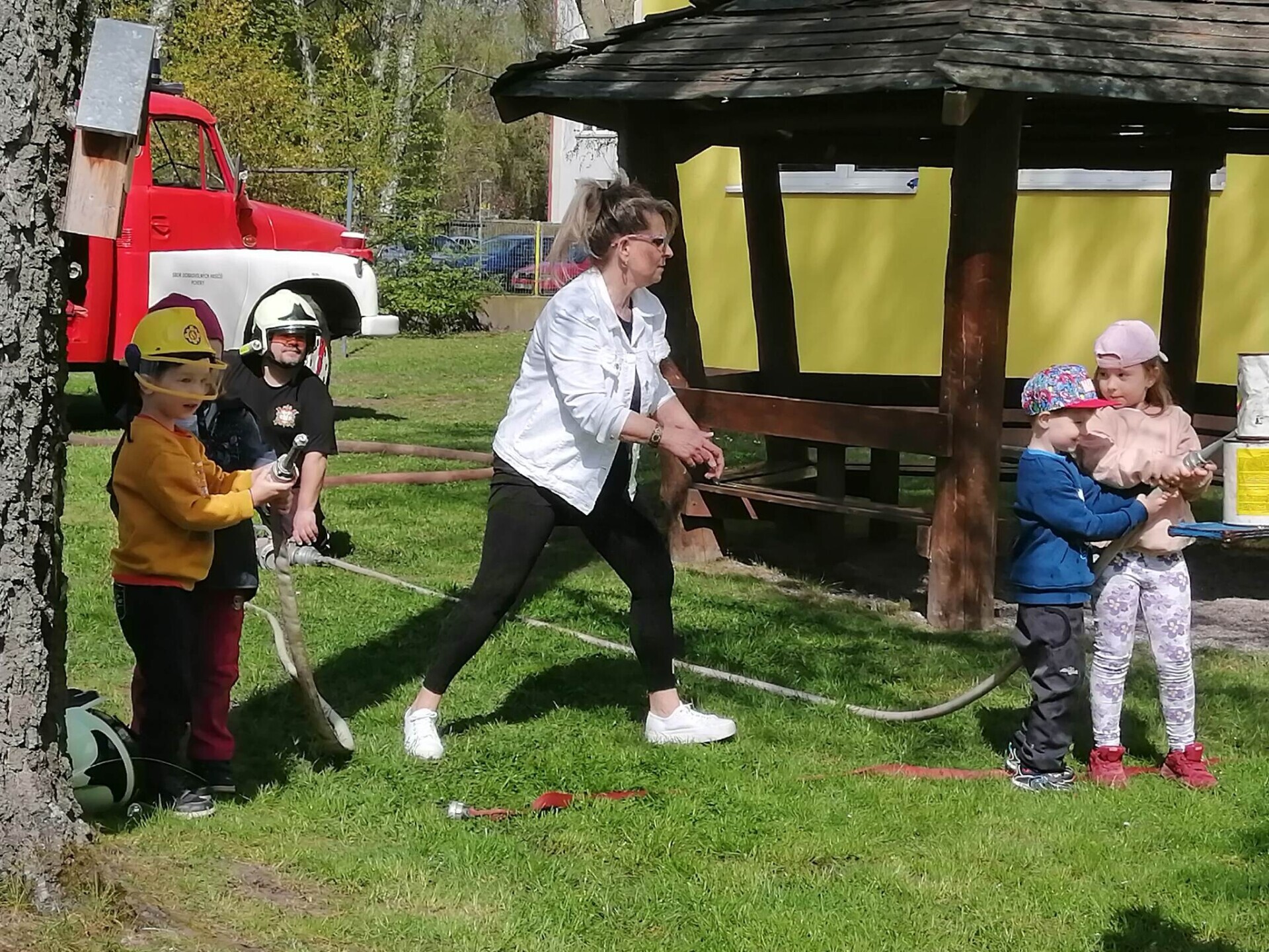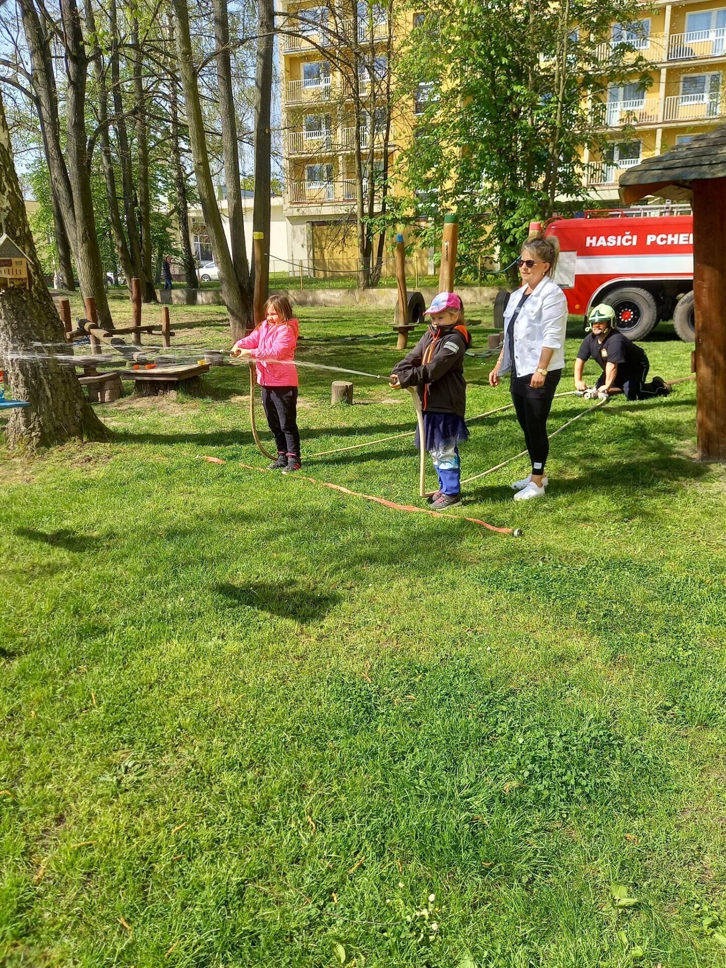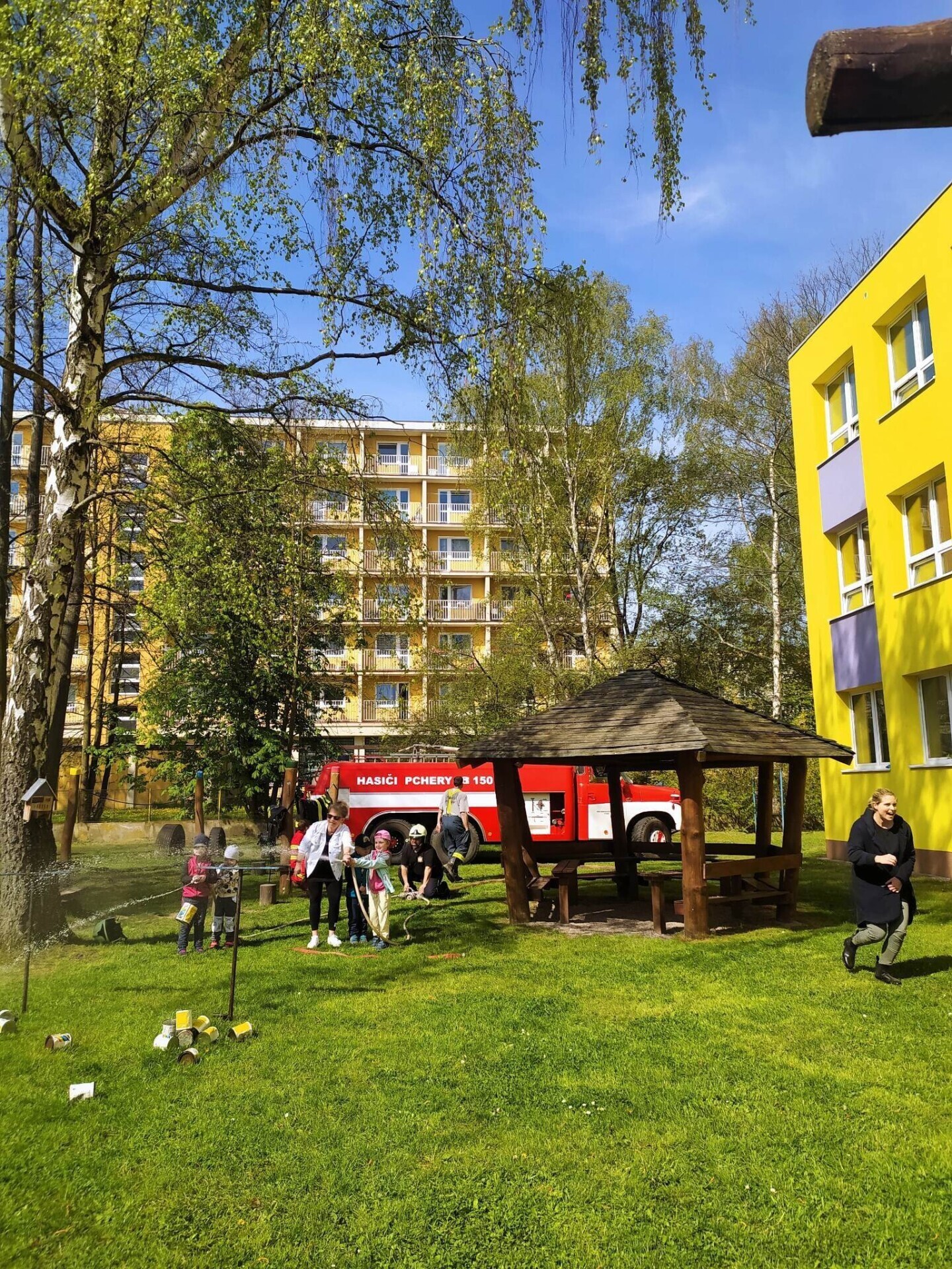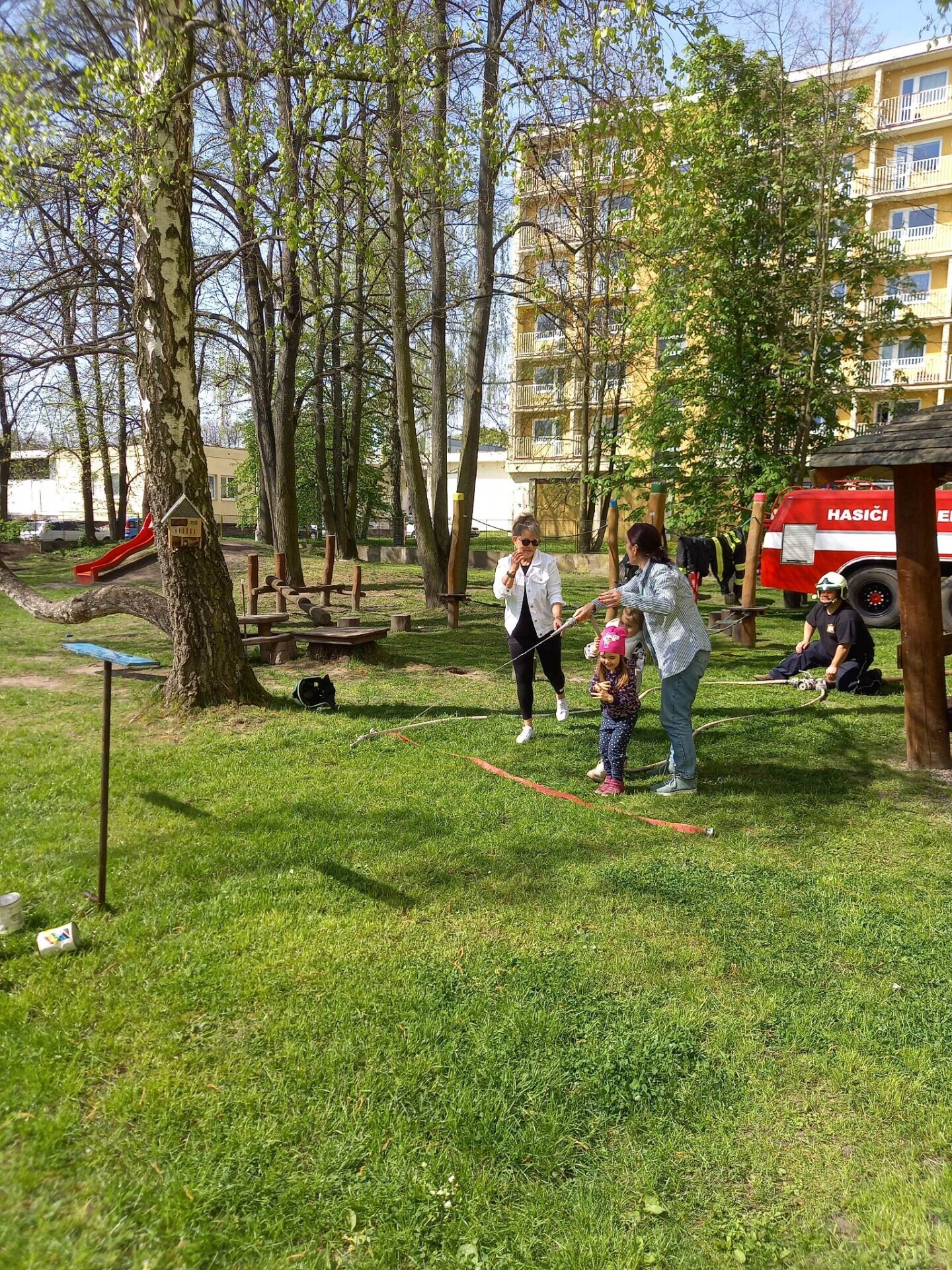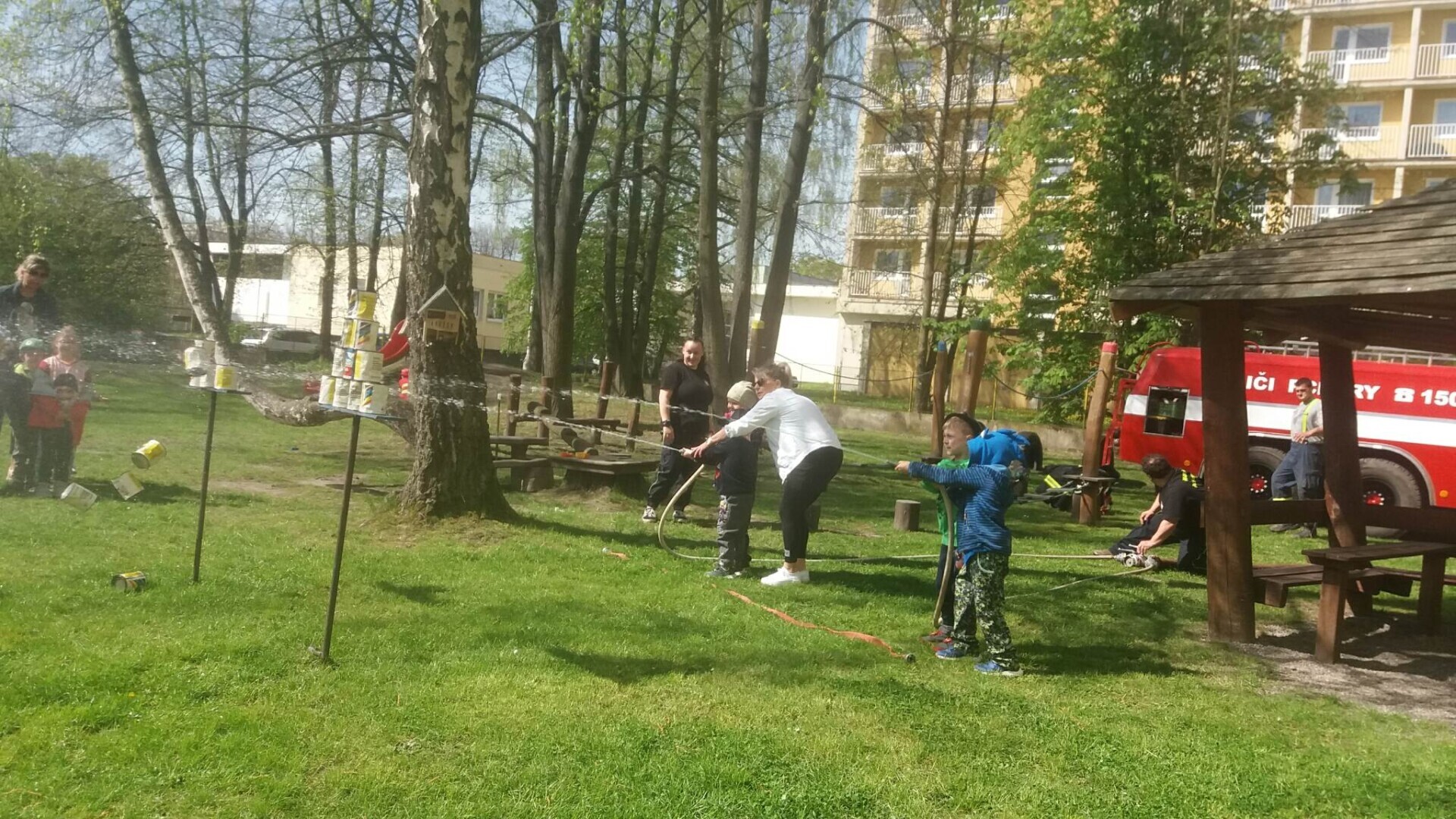 Den hasičů- dobrovolní hasiči z Pcher na školní zahradě