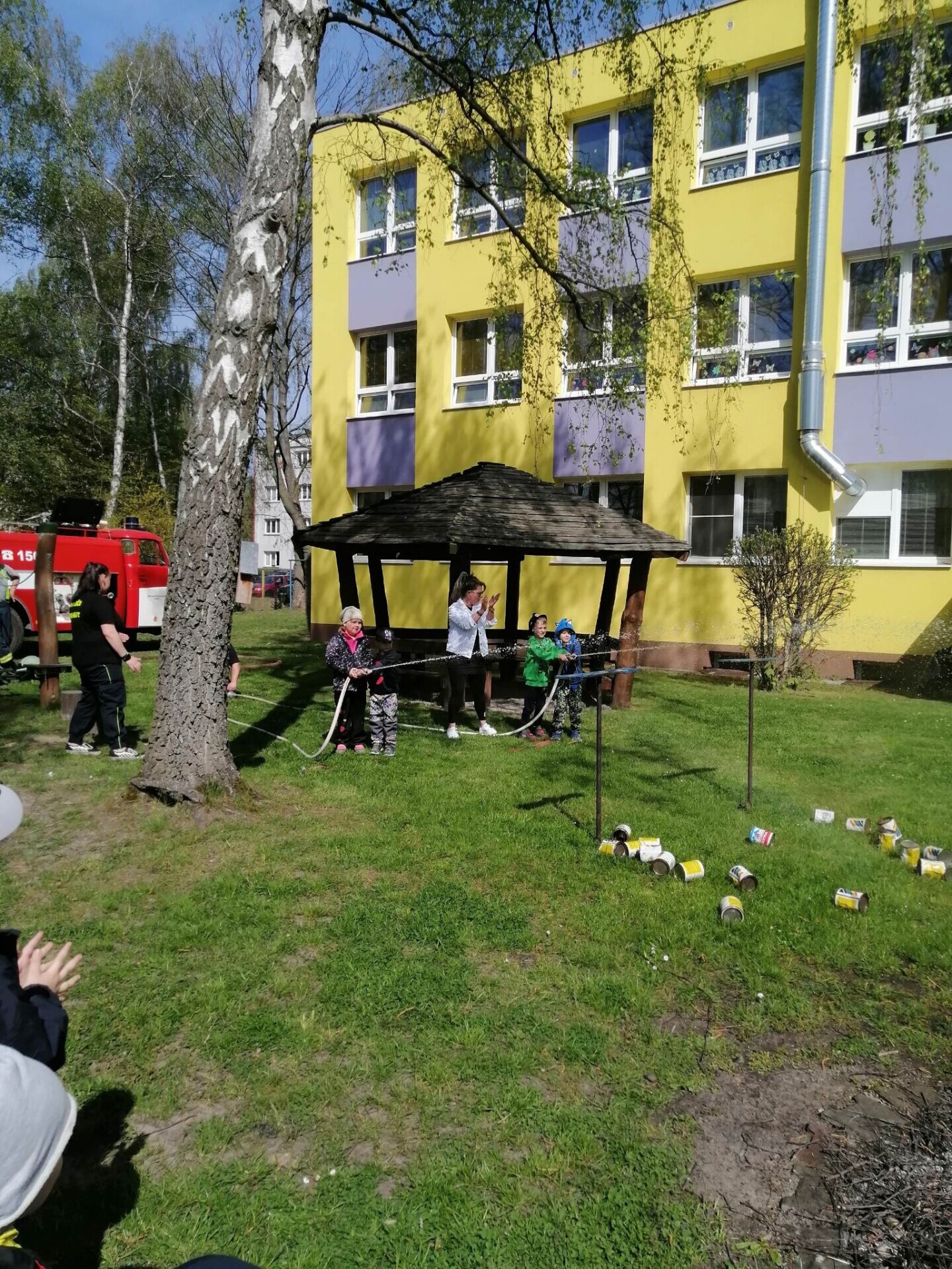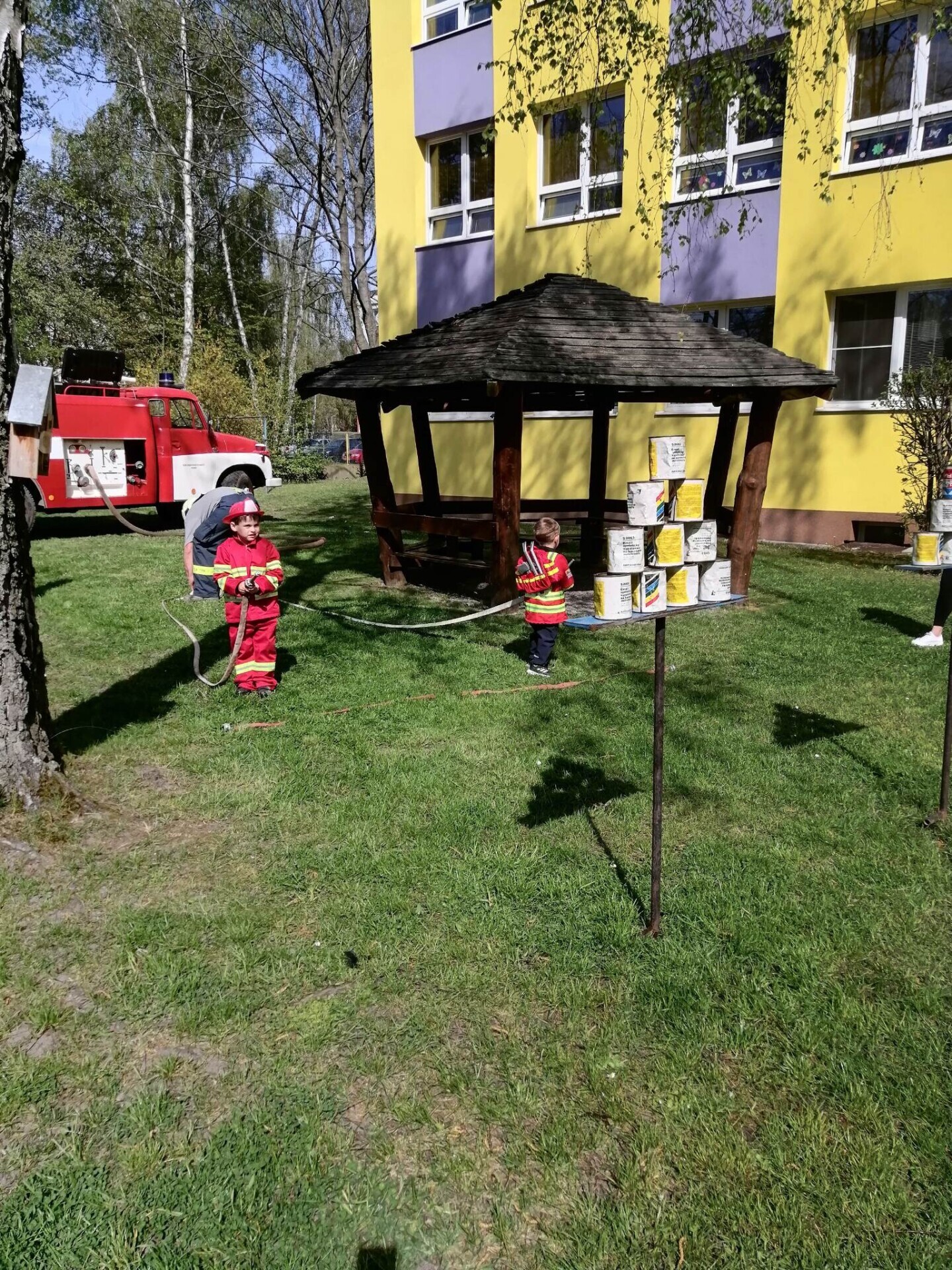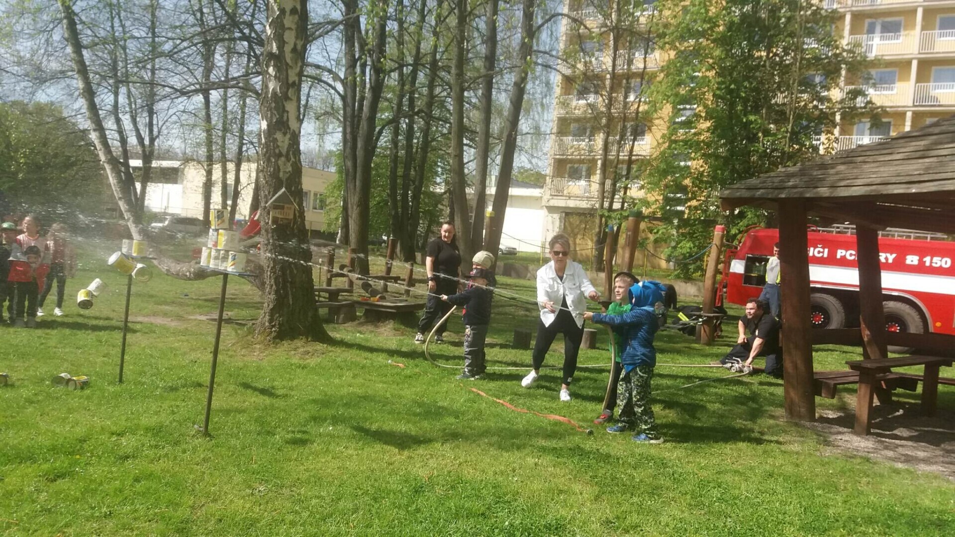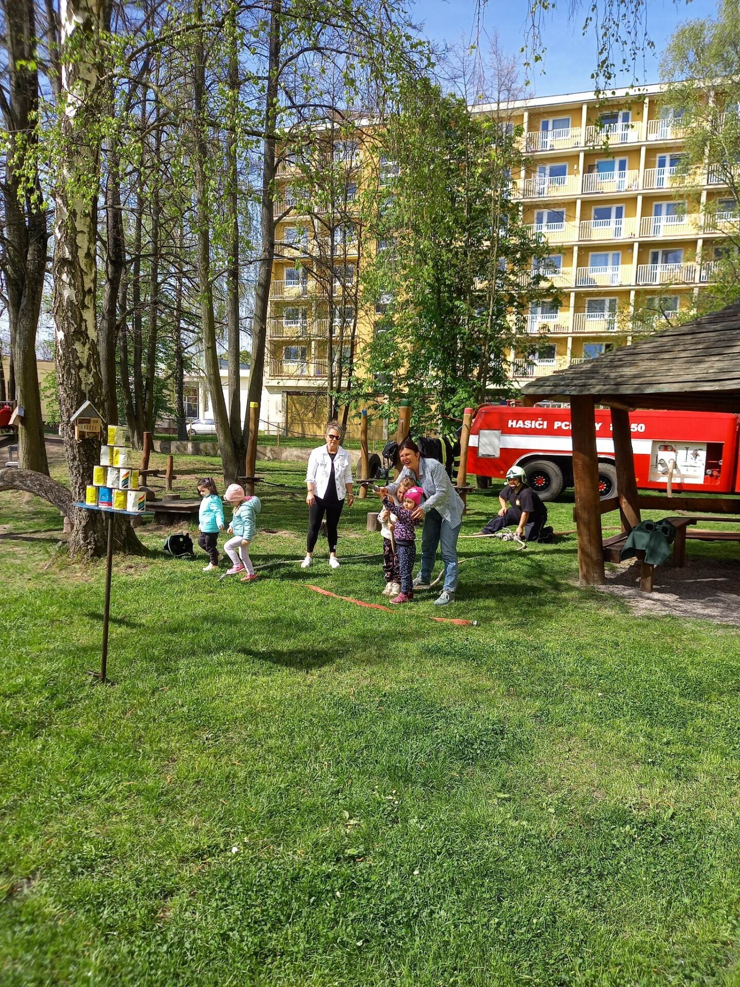 Den hasičů- dobrovolní hasiči z Pcher na školní zahradě
