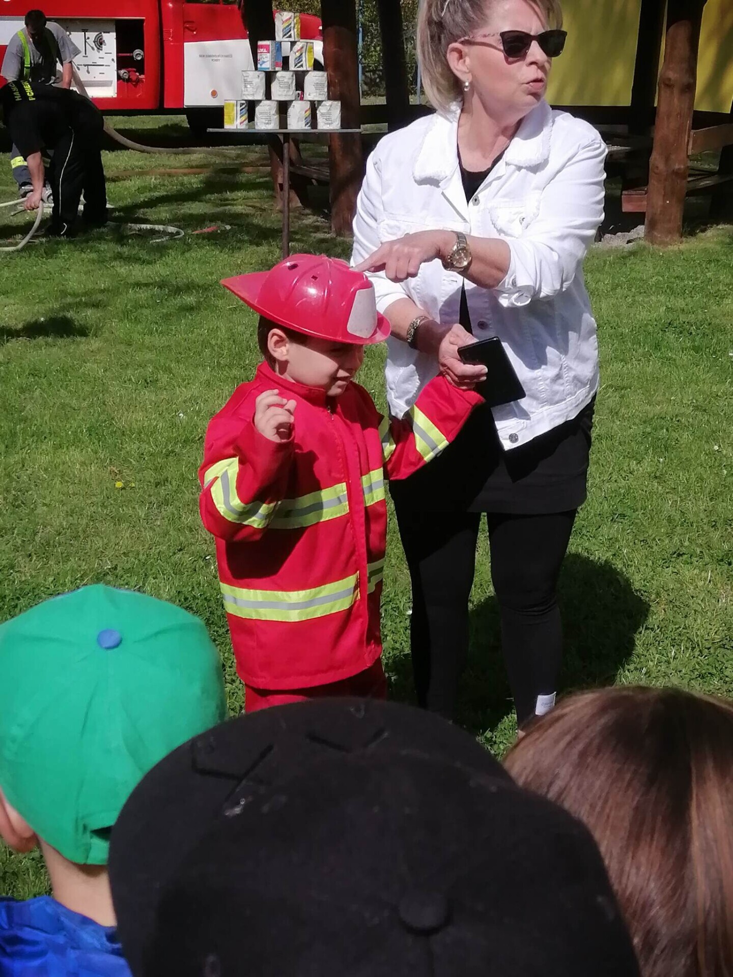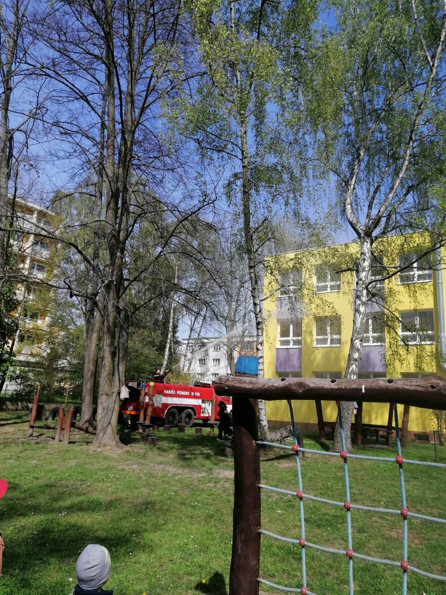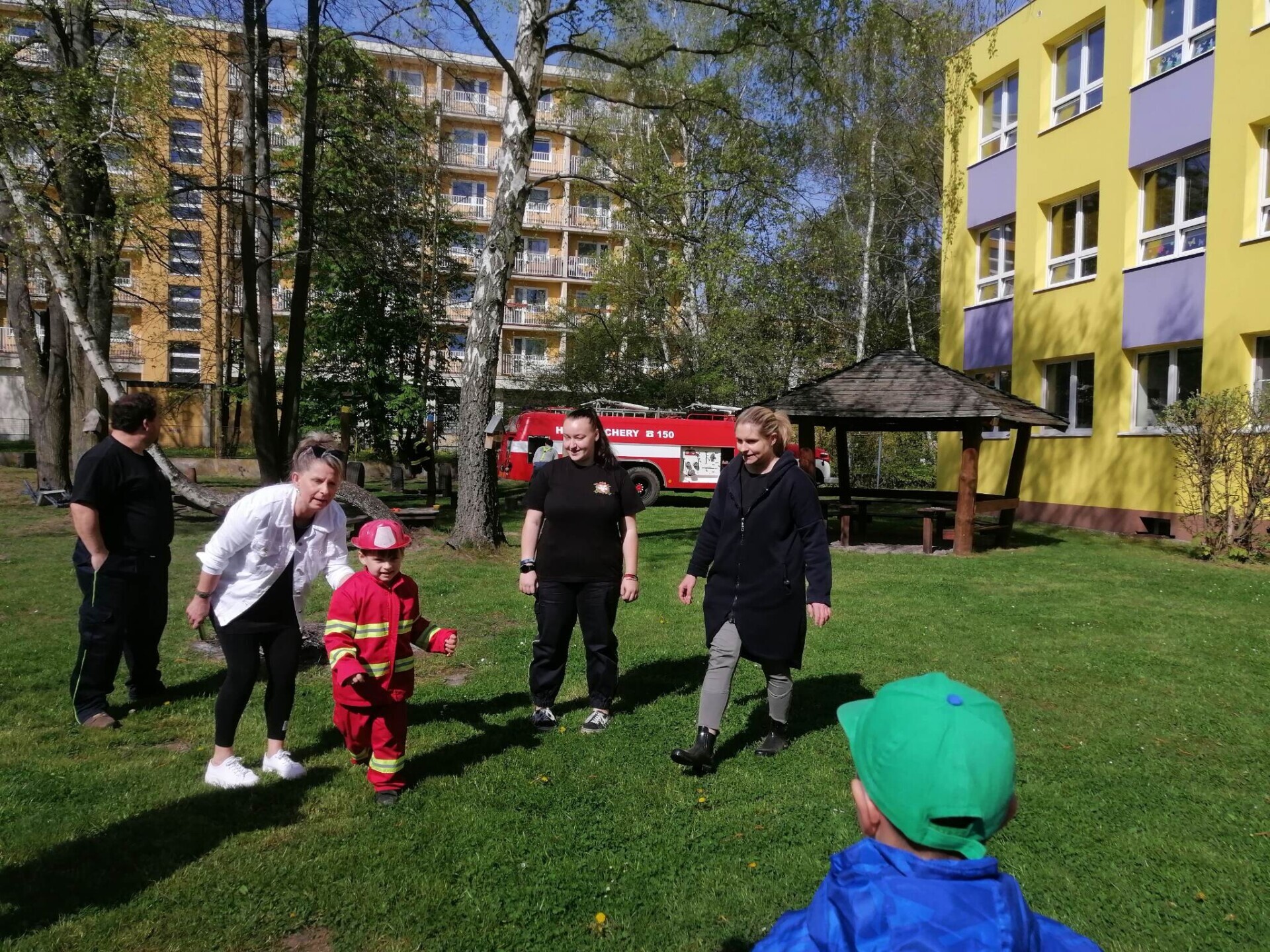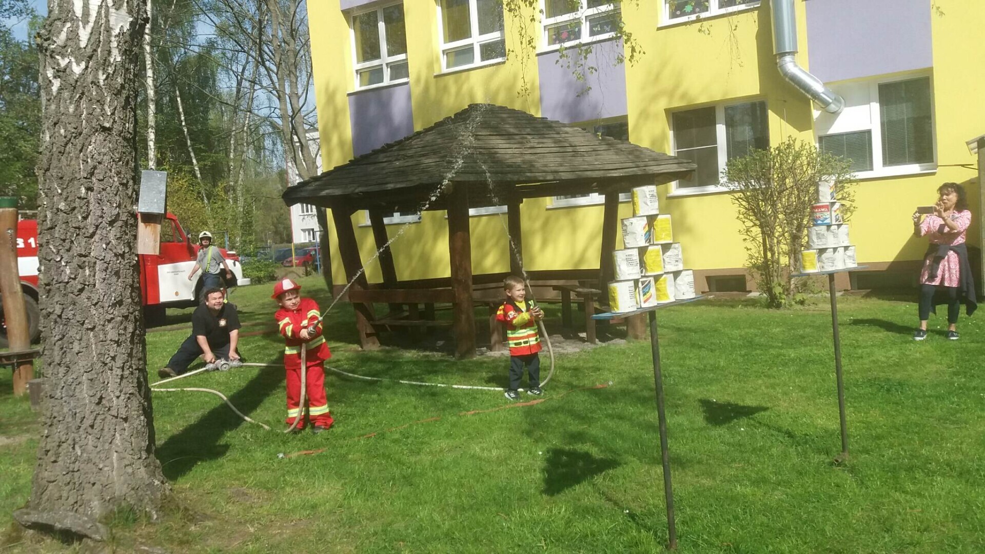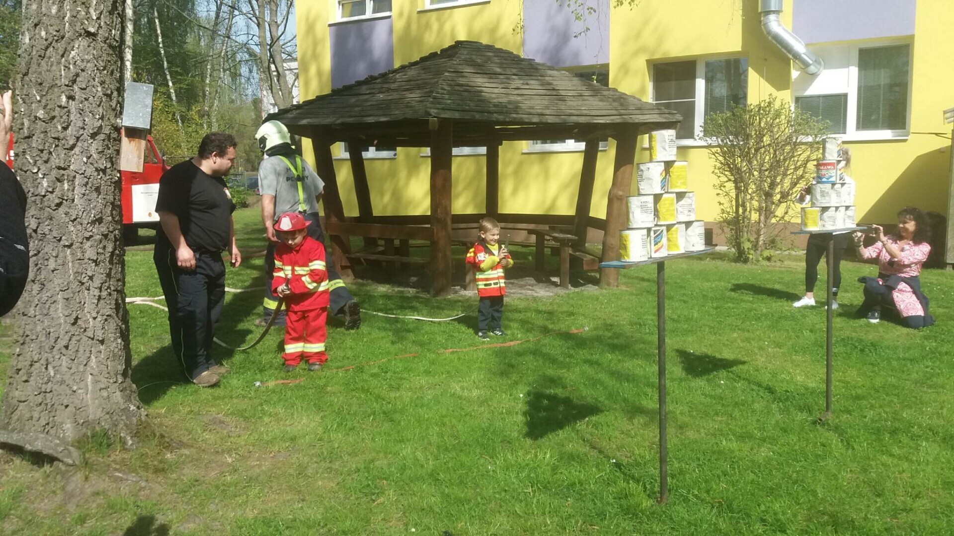 Den hasičů- dobrovolní hasiči z Pcher na školní zahradě