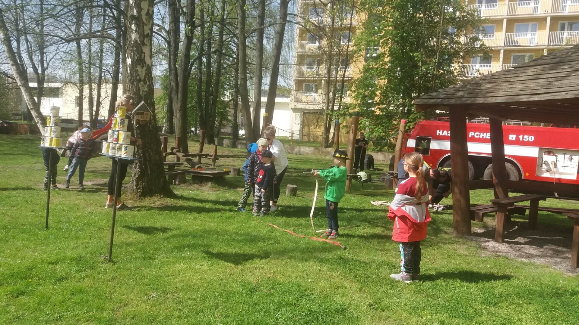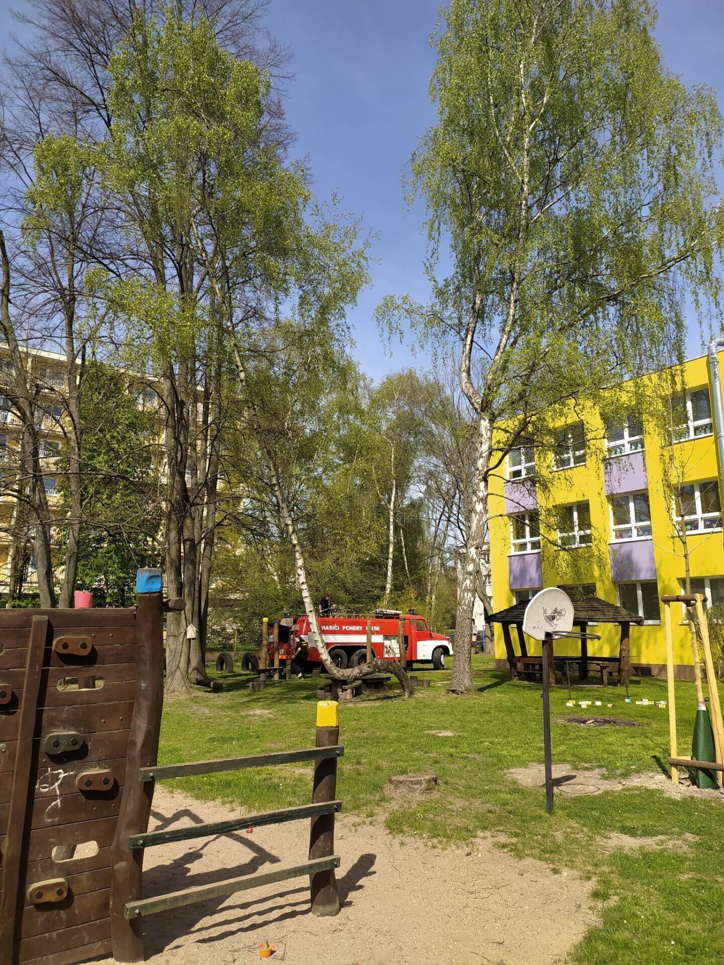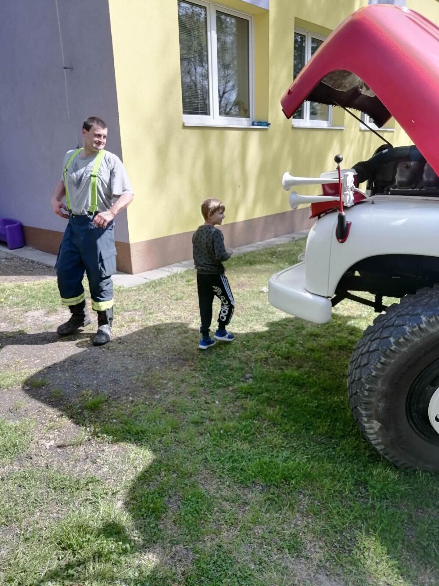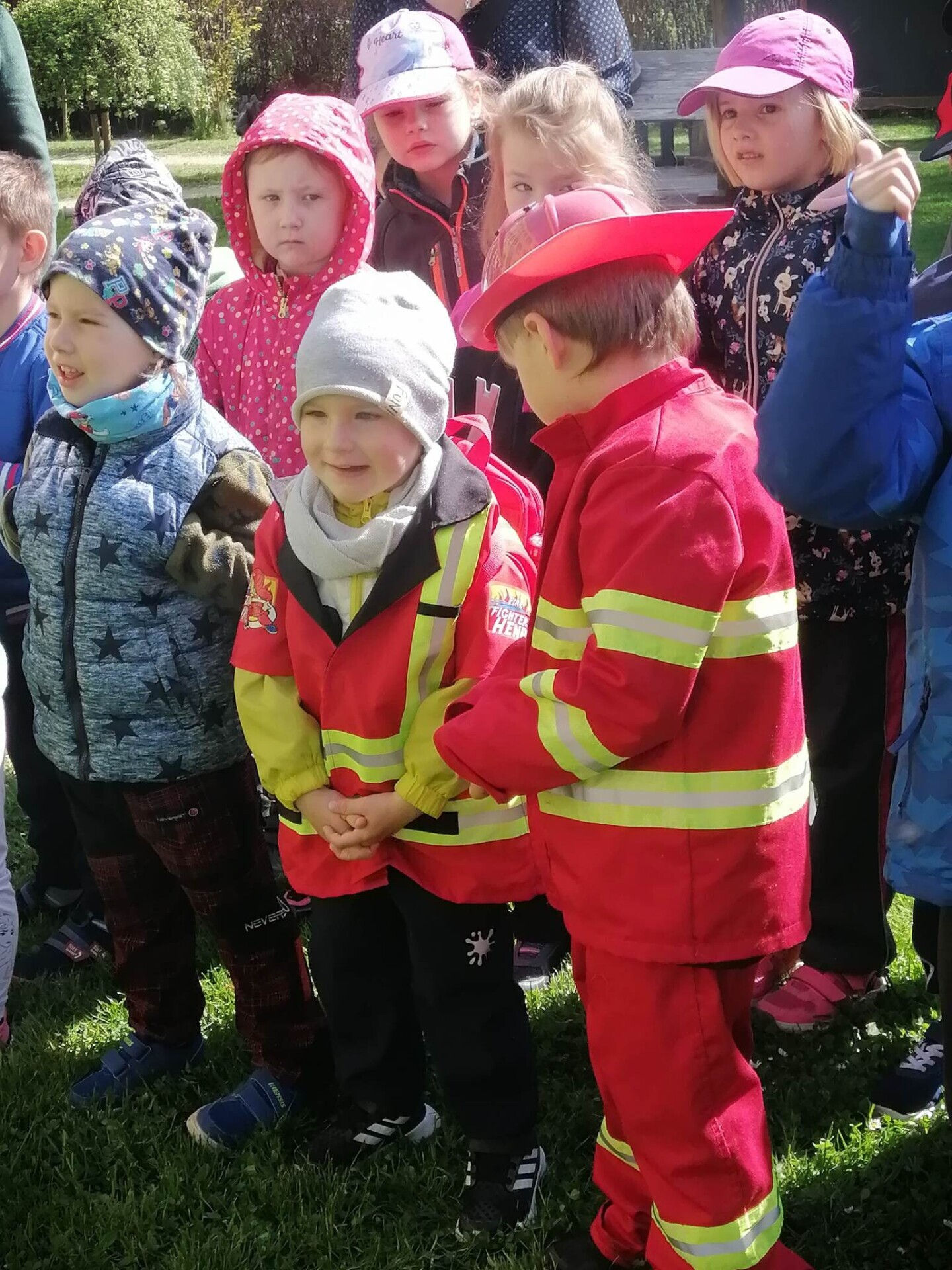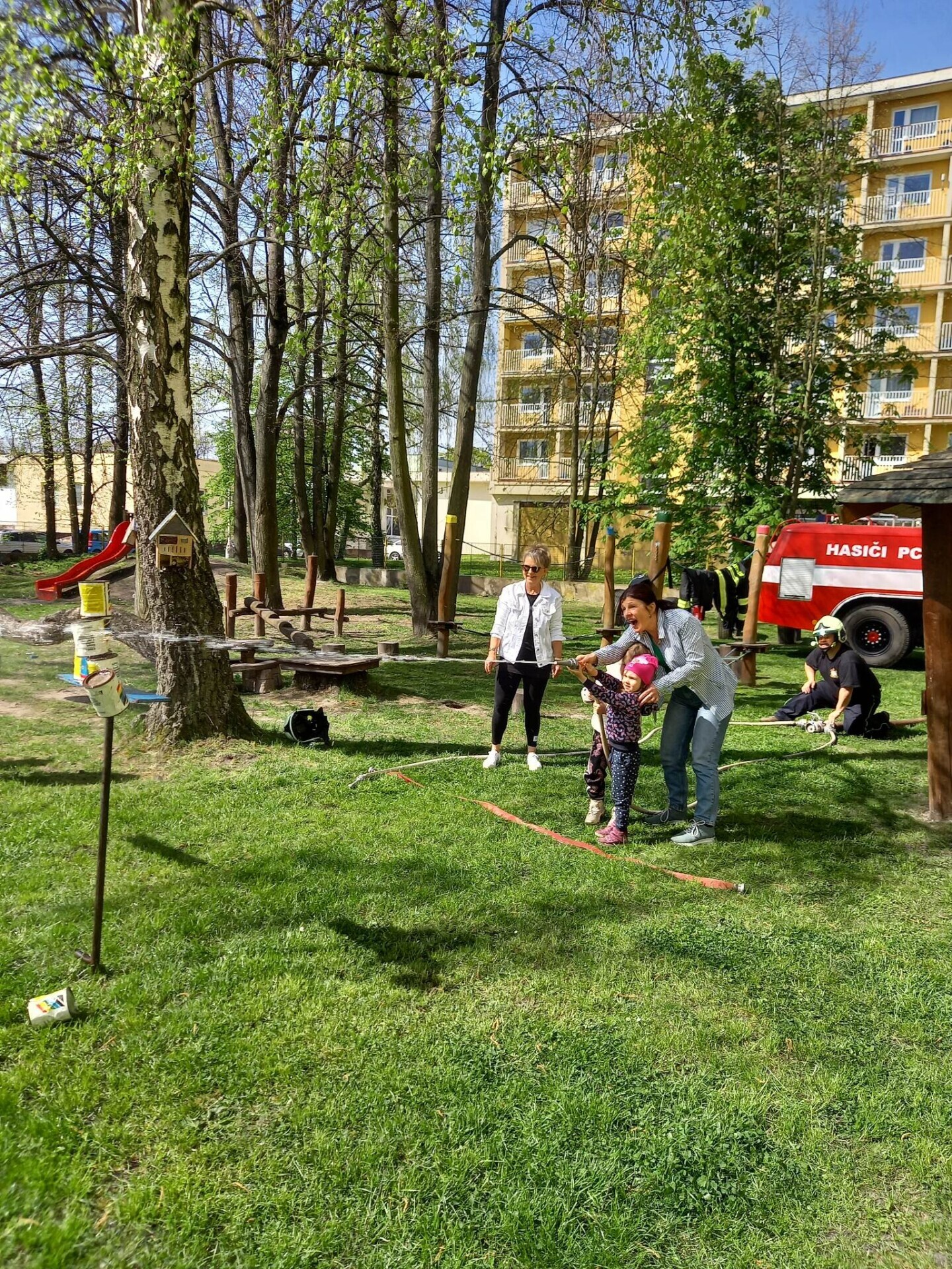 Den hasičů- dobrovolní hasiči z Pcher na školní zahradě