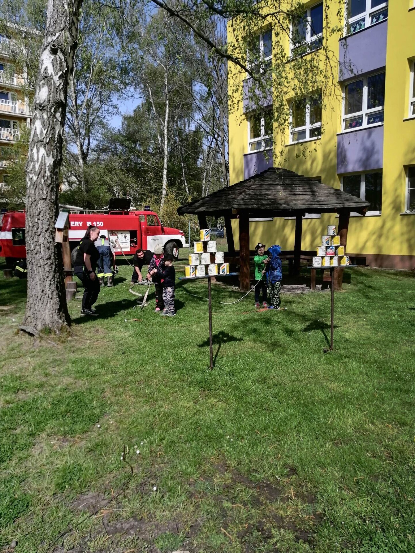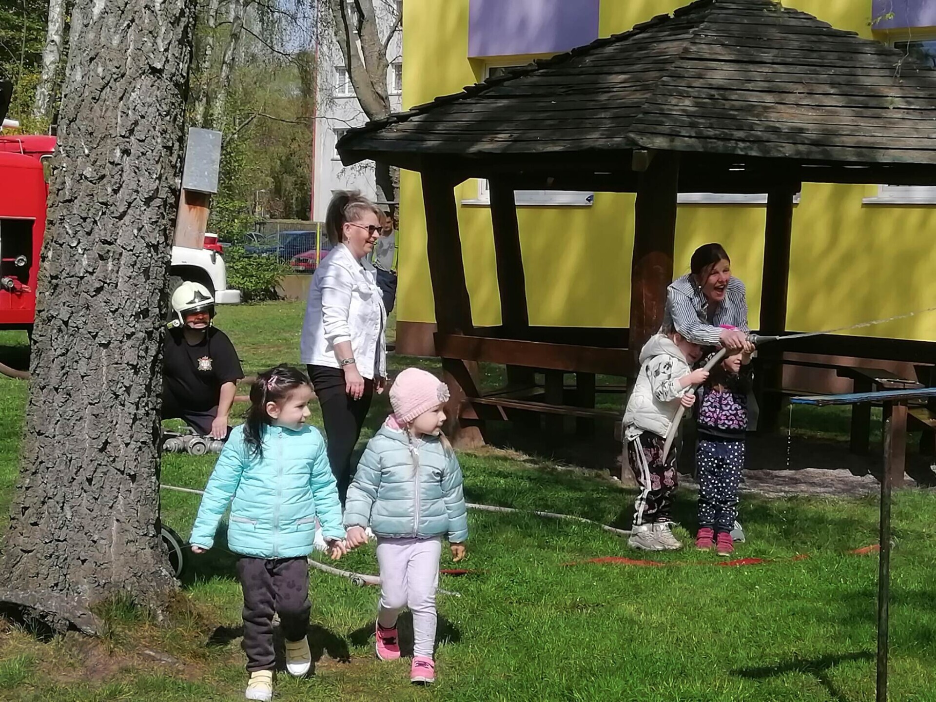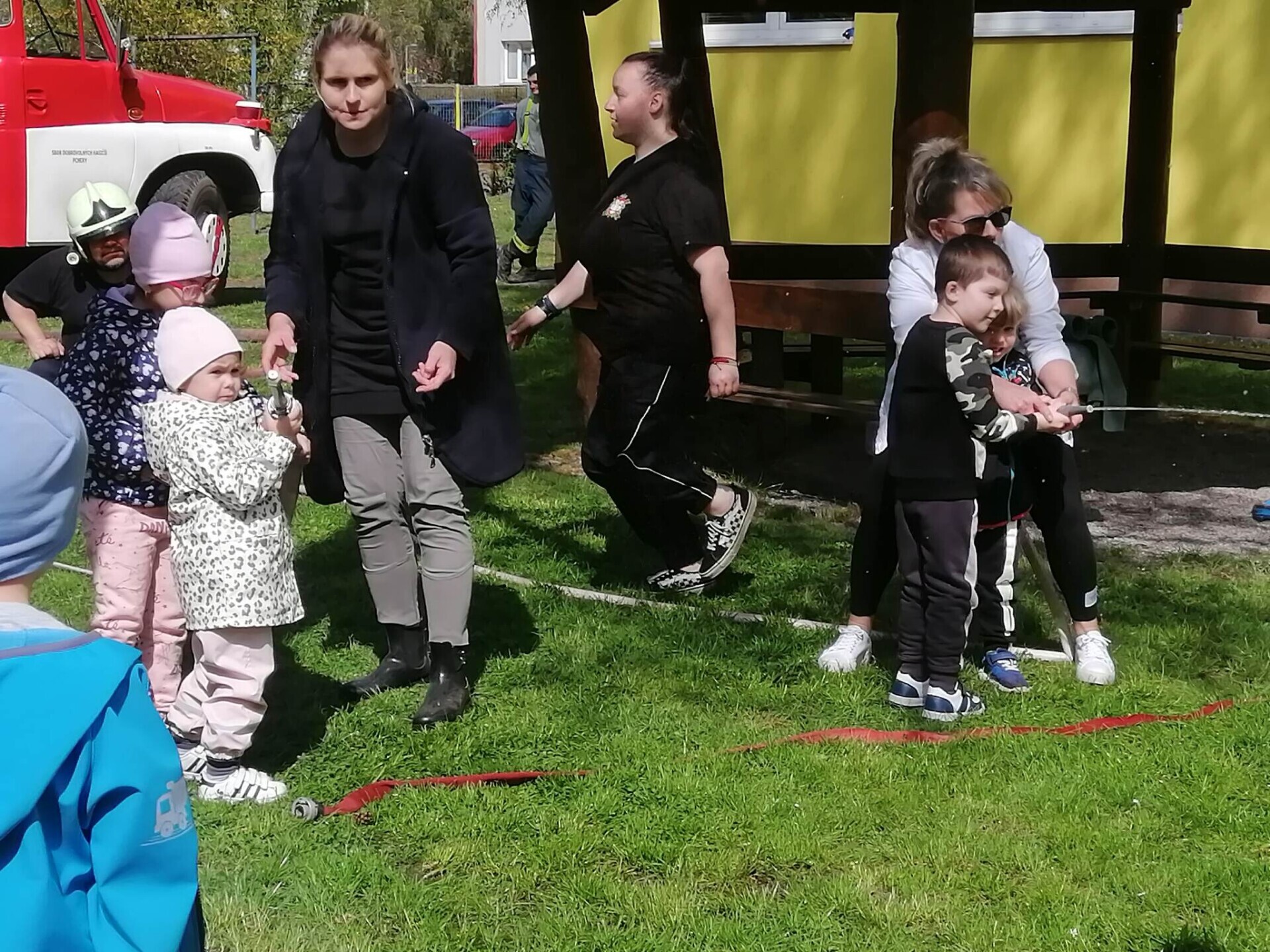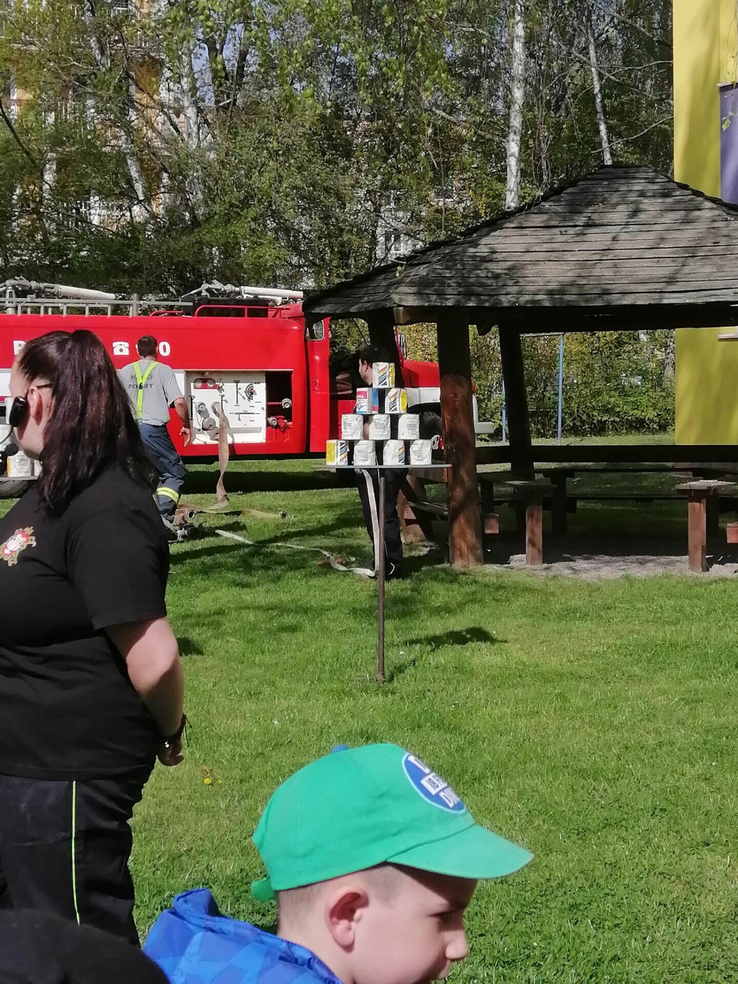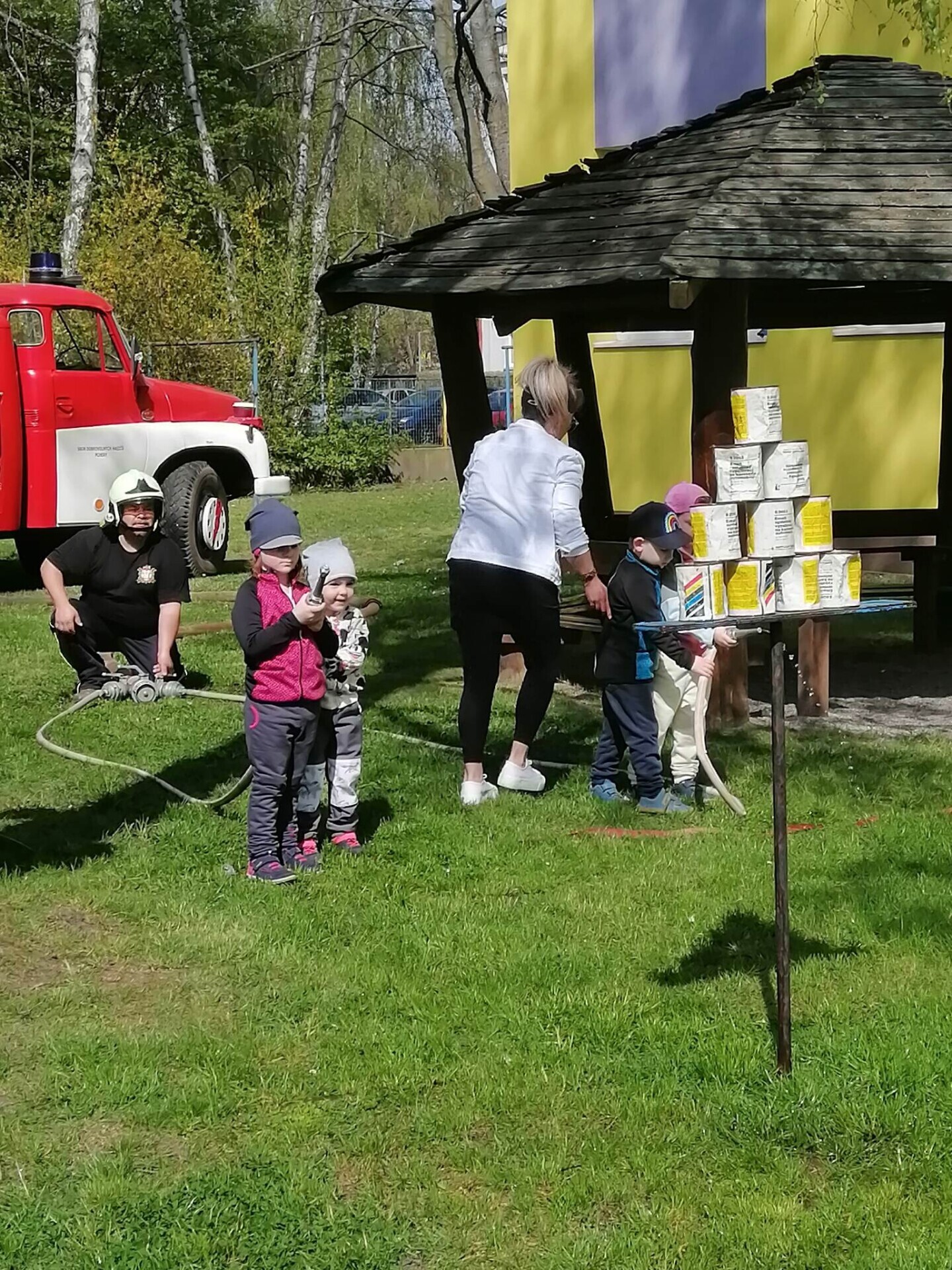 Den hasičů- dobrovolní hasiči z Pcher na školní zahradě