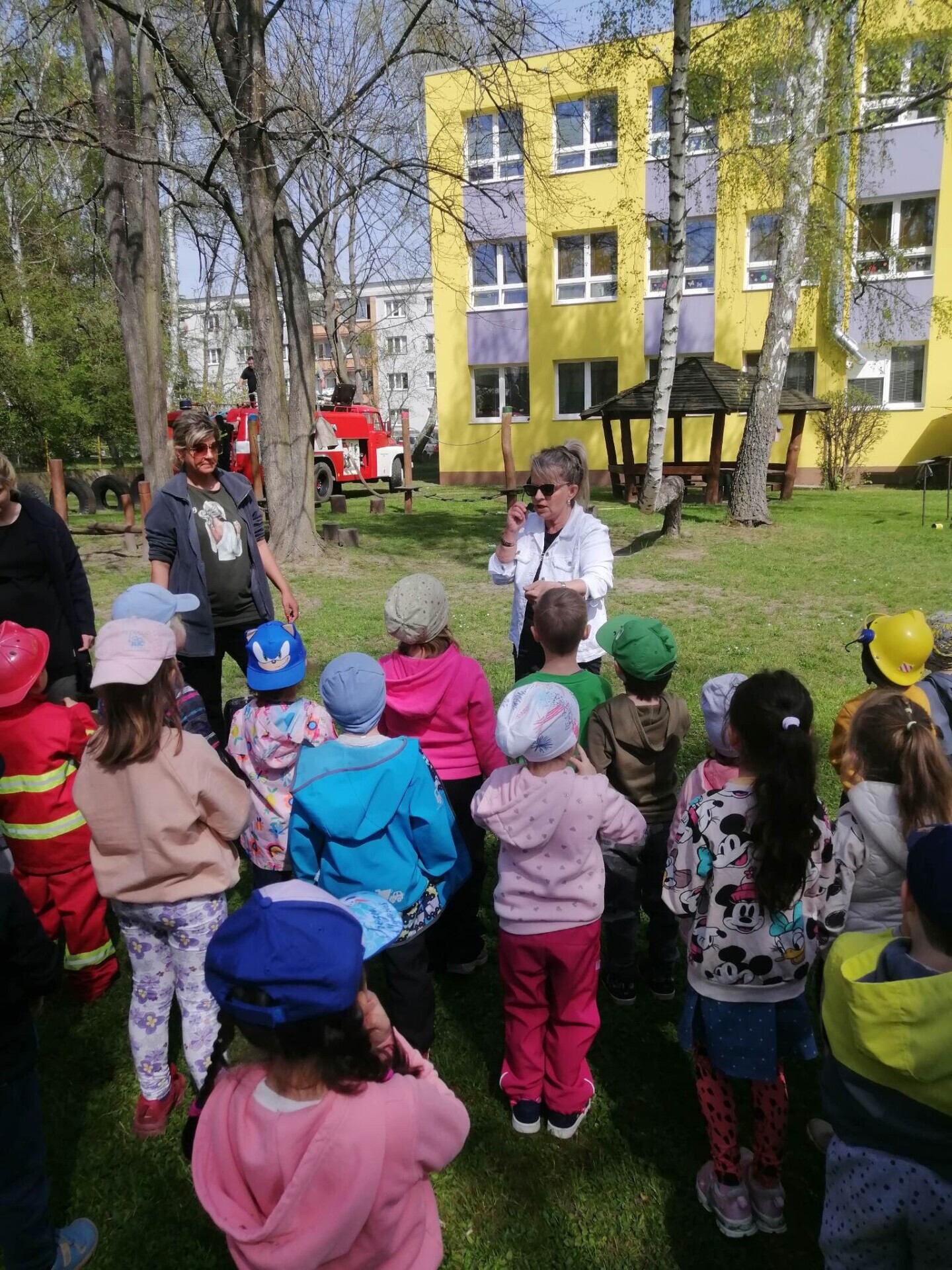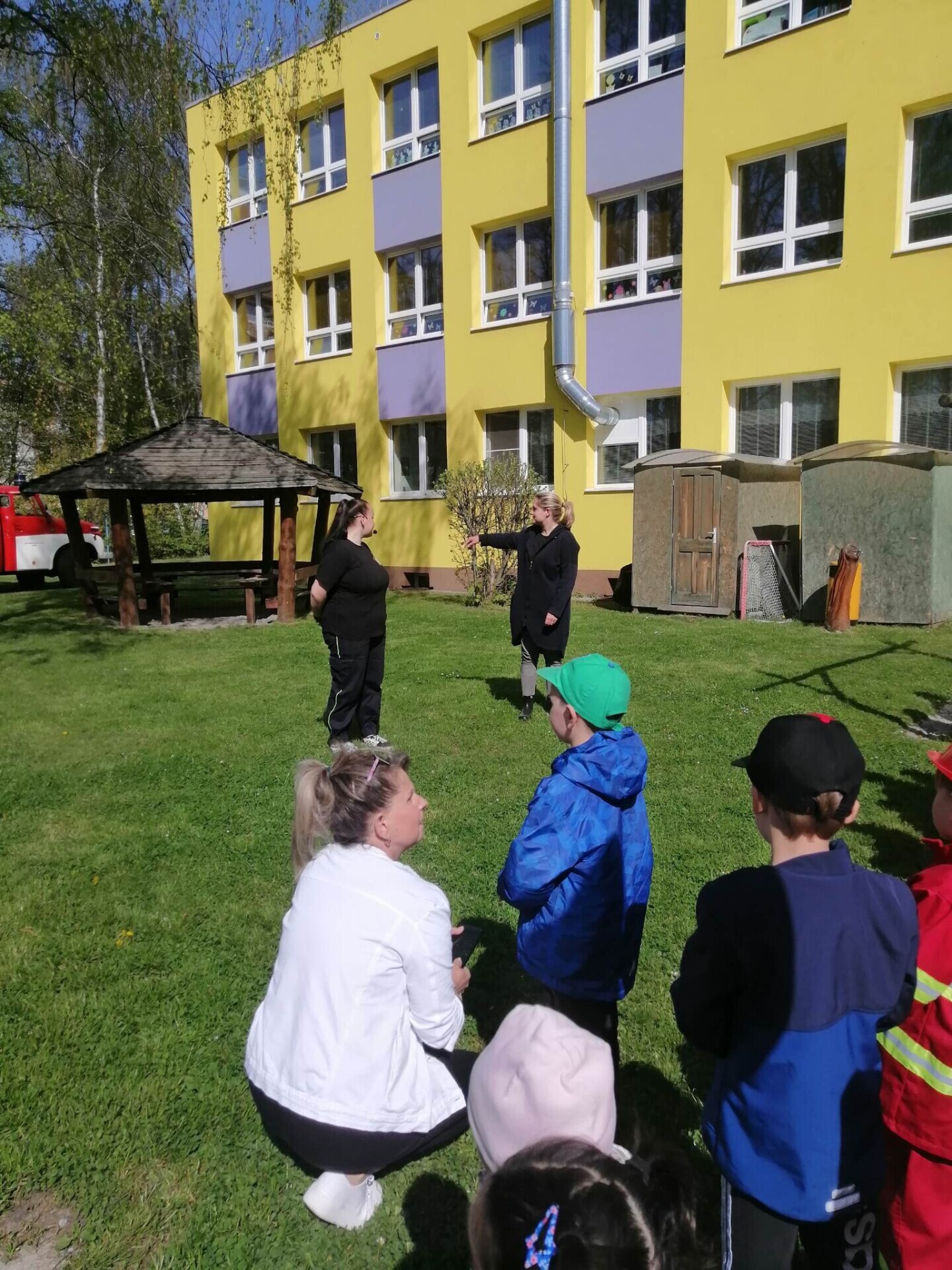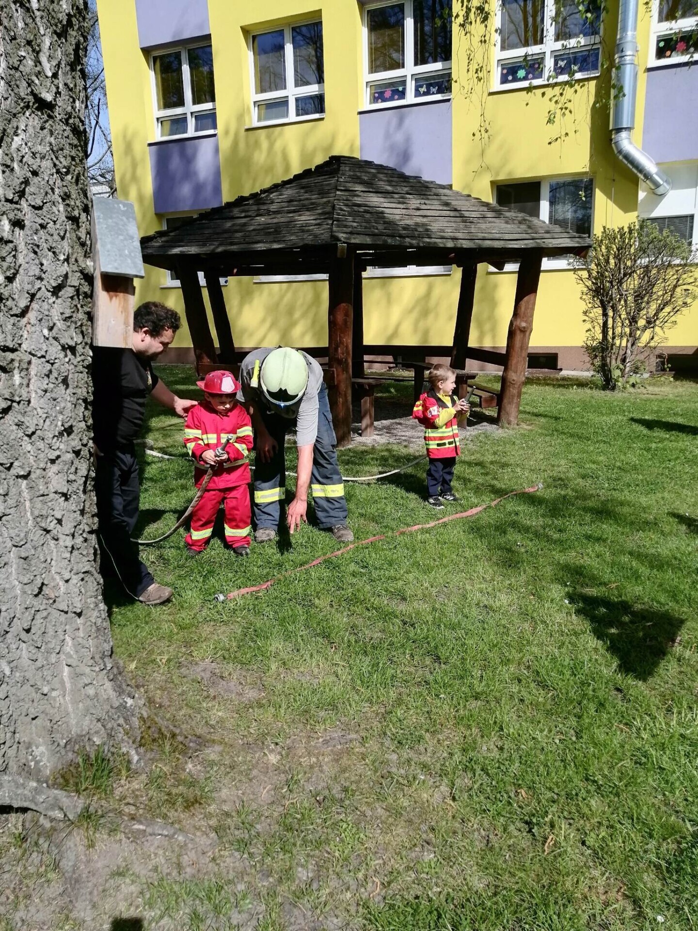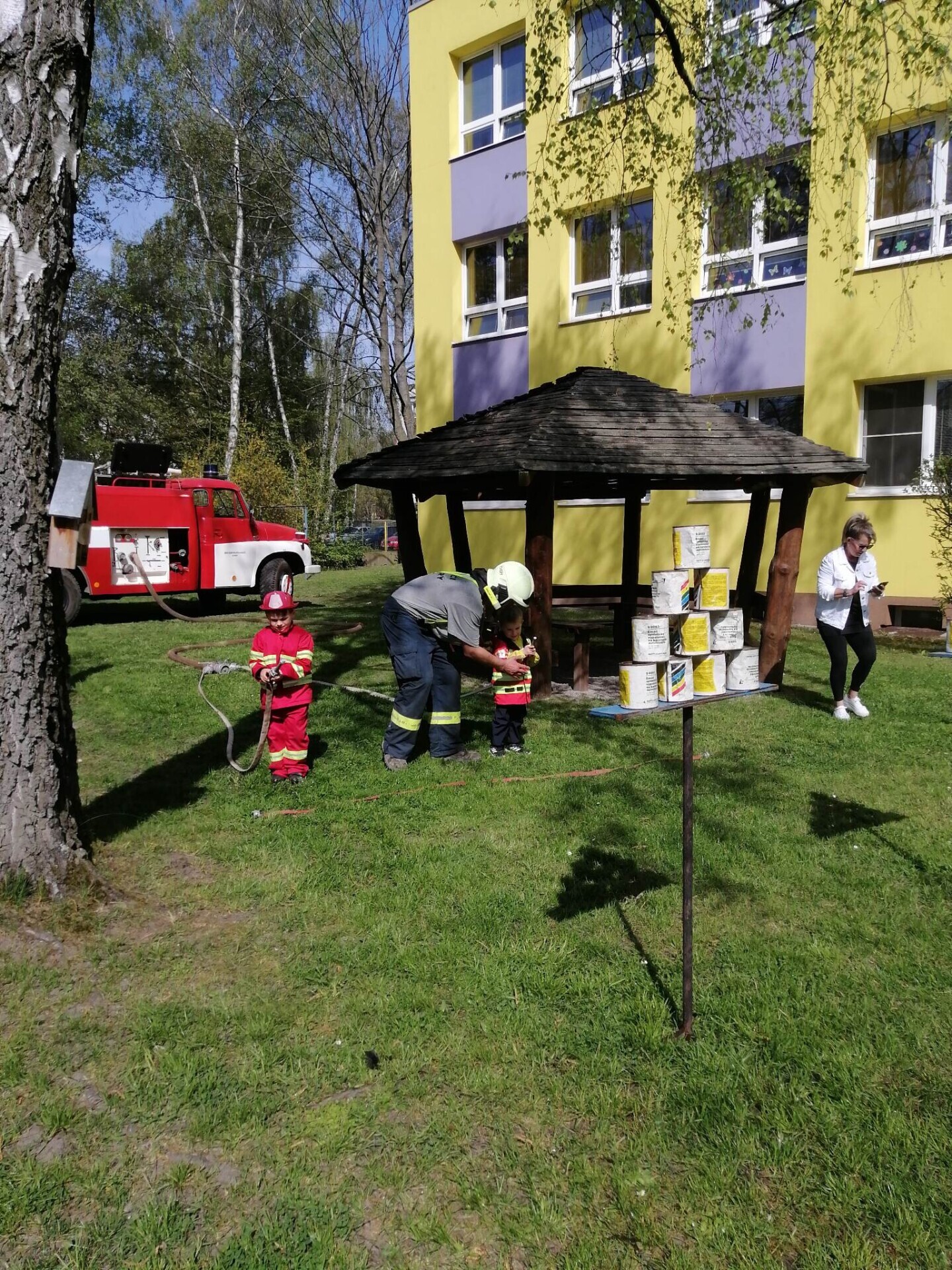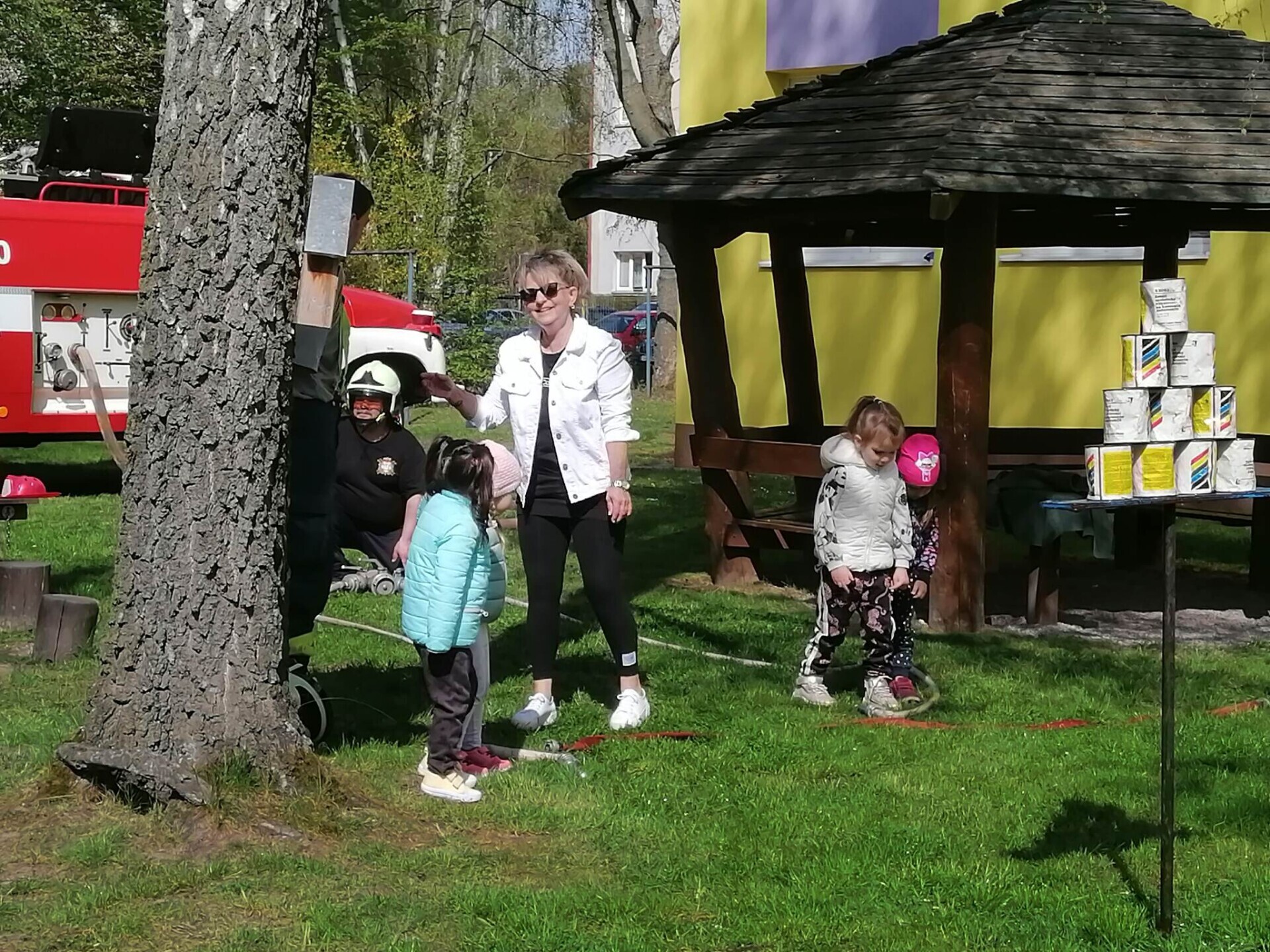 Den hasičů- dobrovolní hasiči z Pcher na školní zahradě