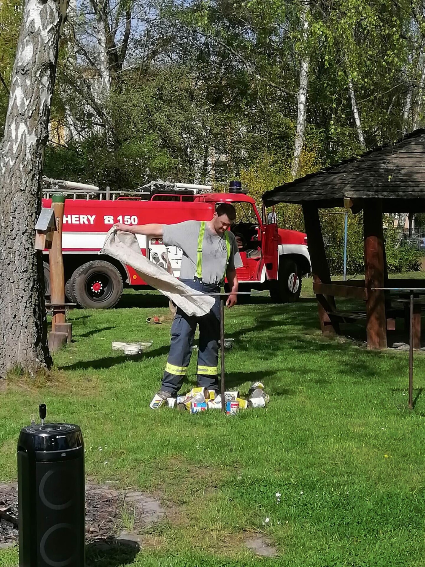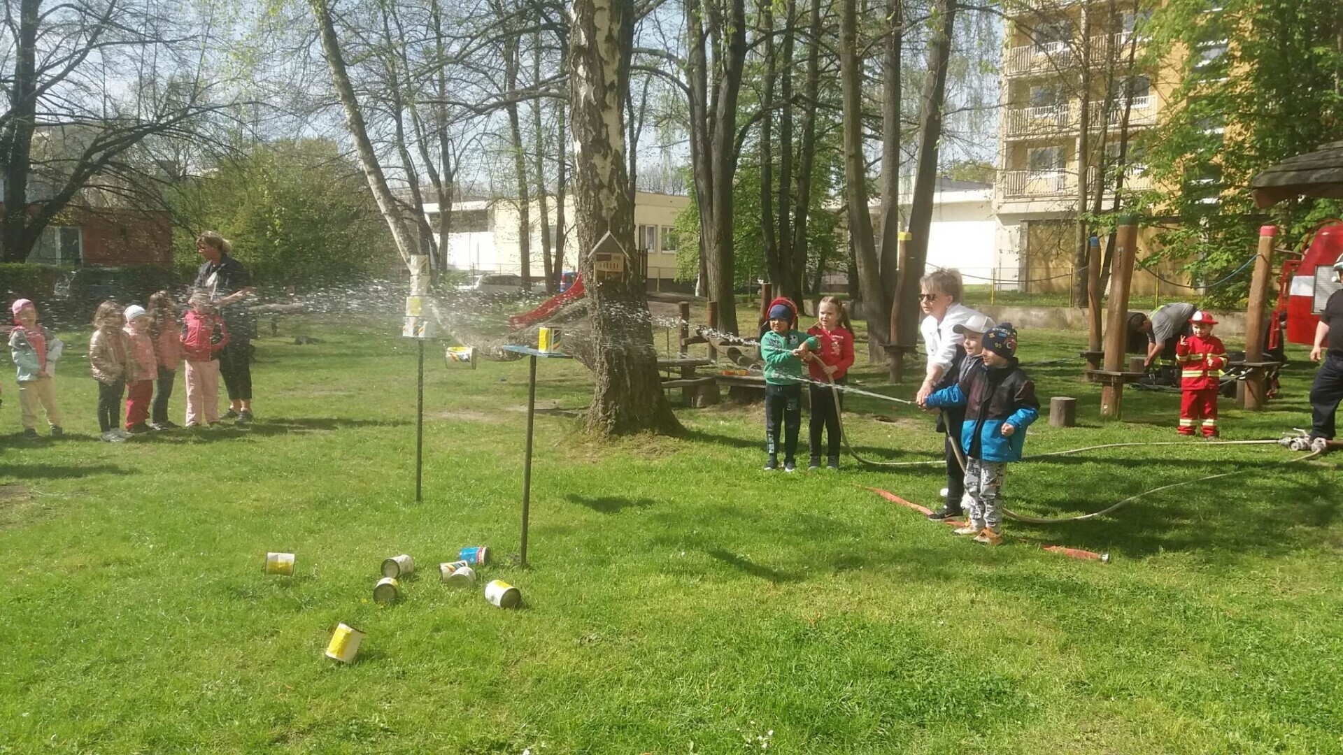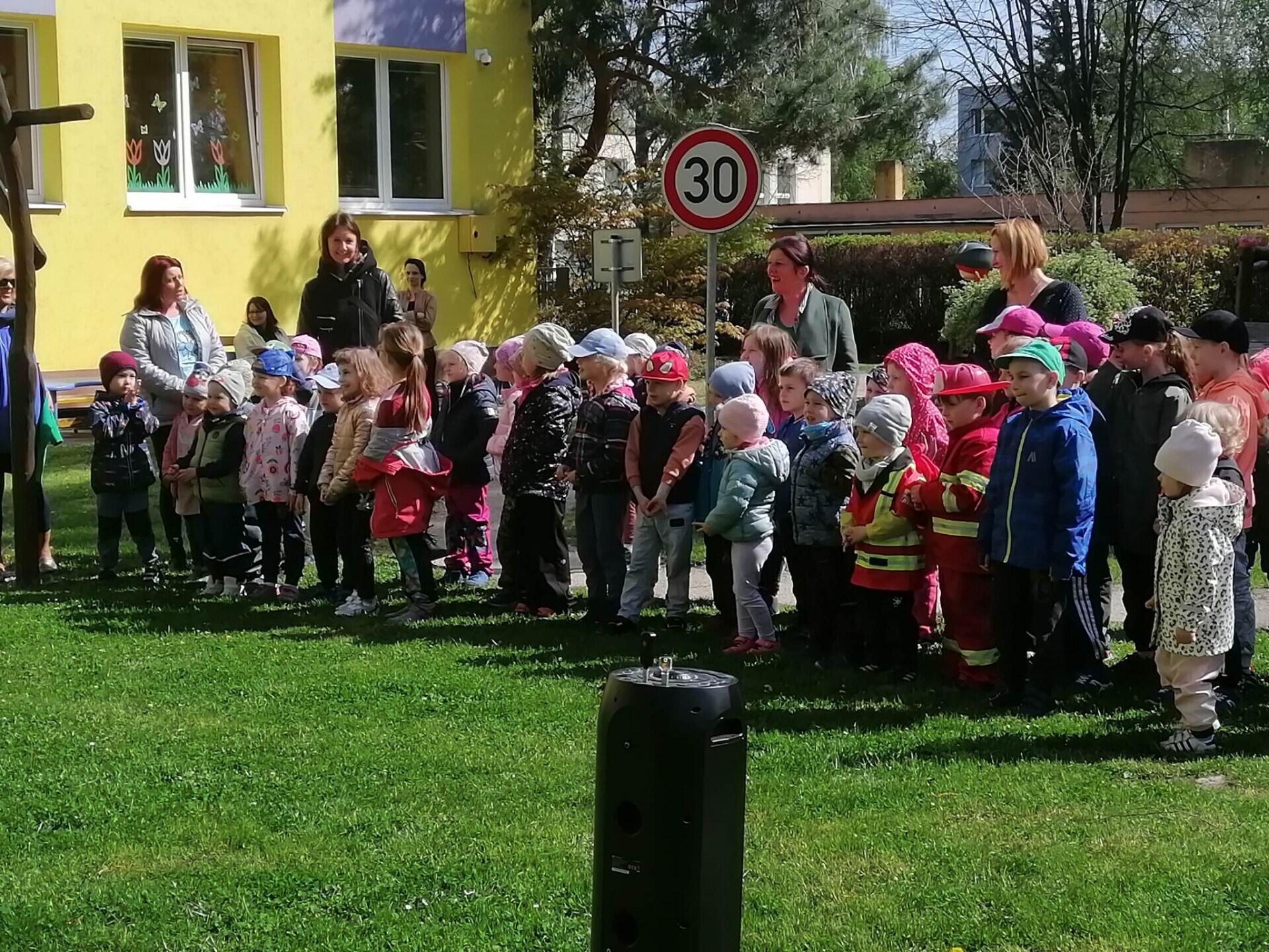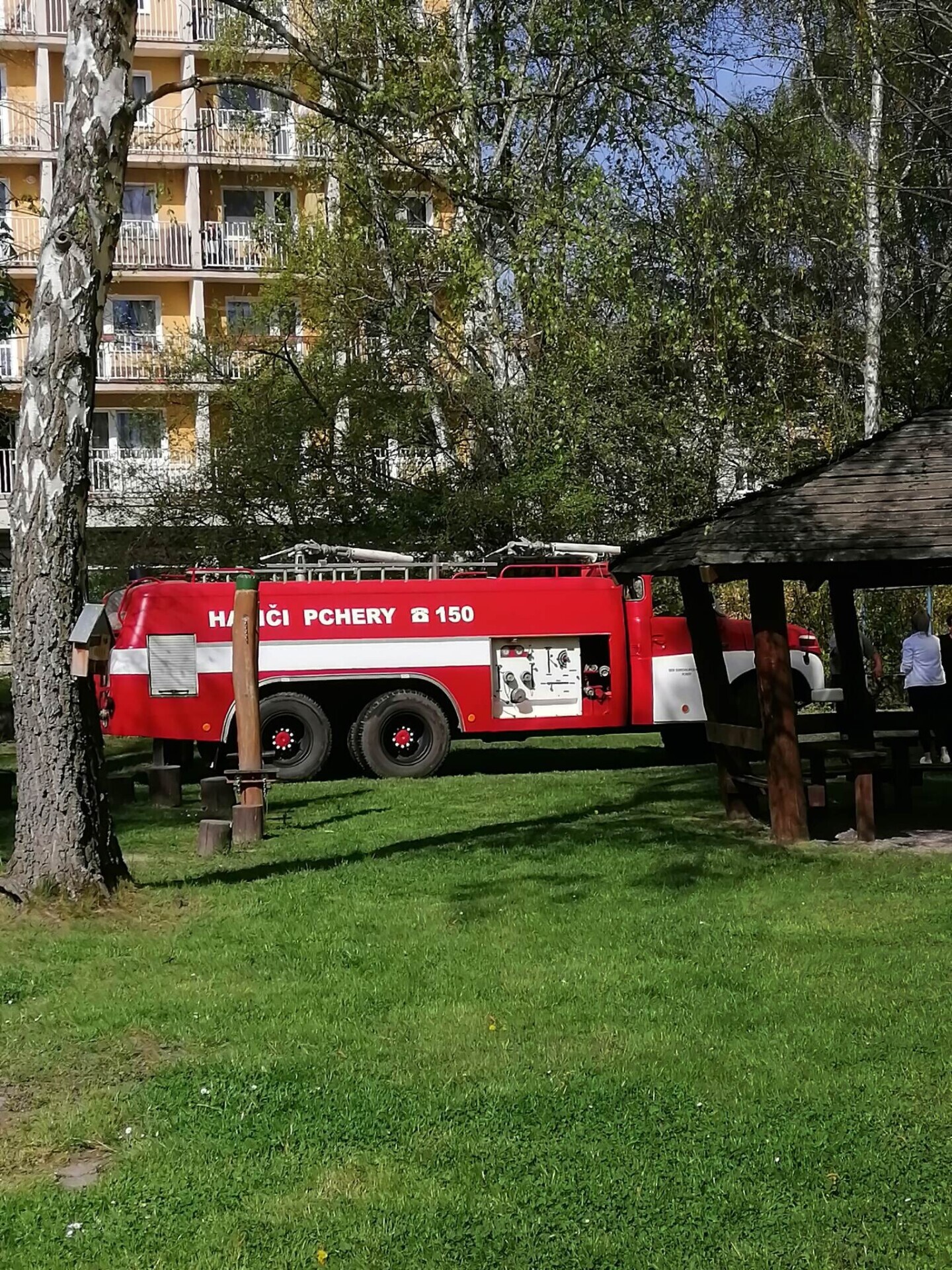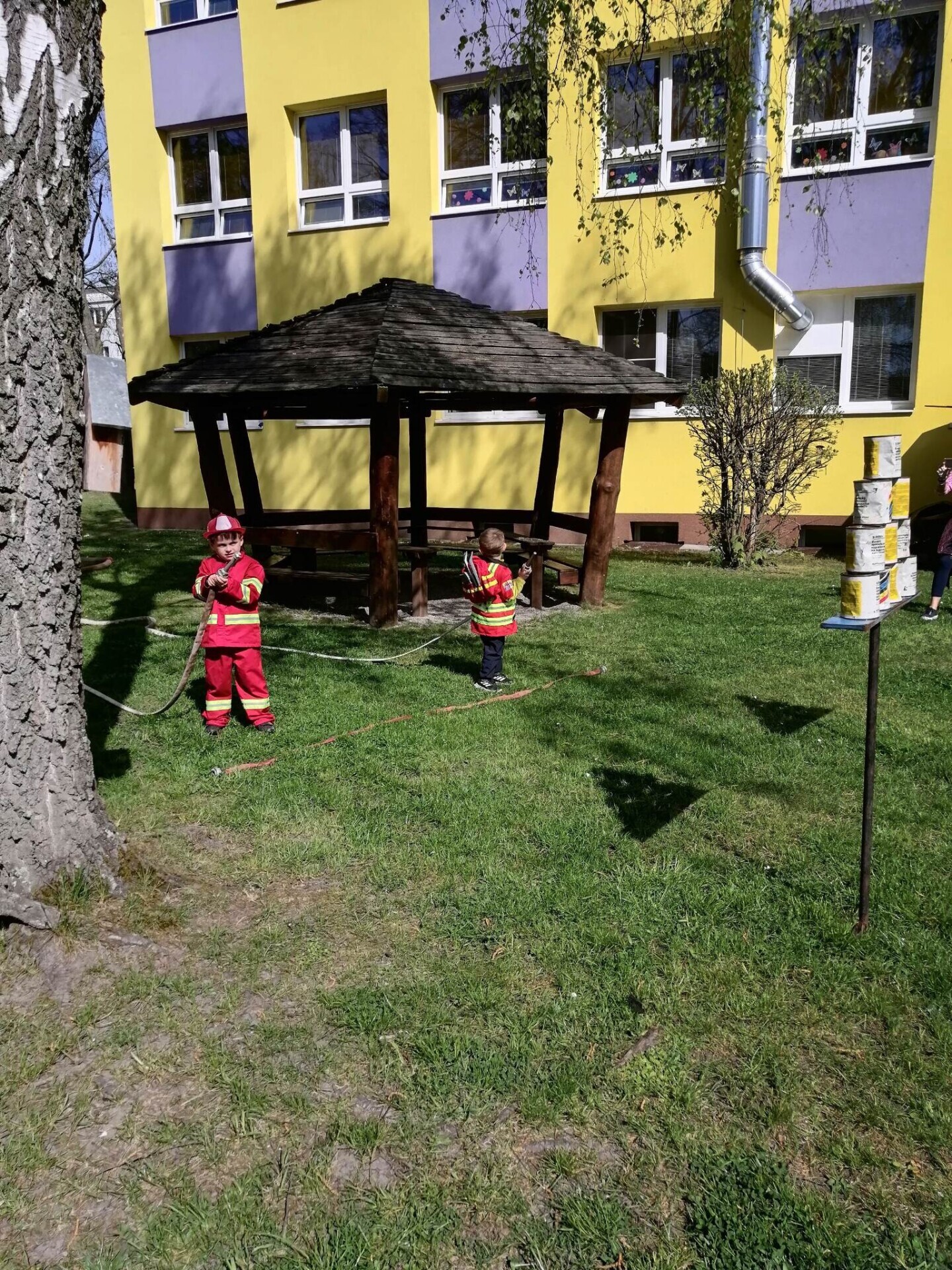 Den hasičů- dobrovolní hasiči z Pcher na školní zahradě