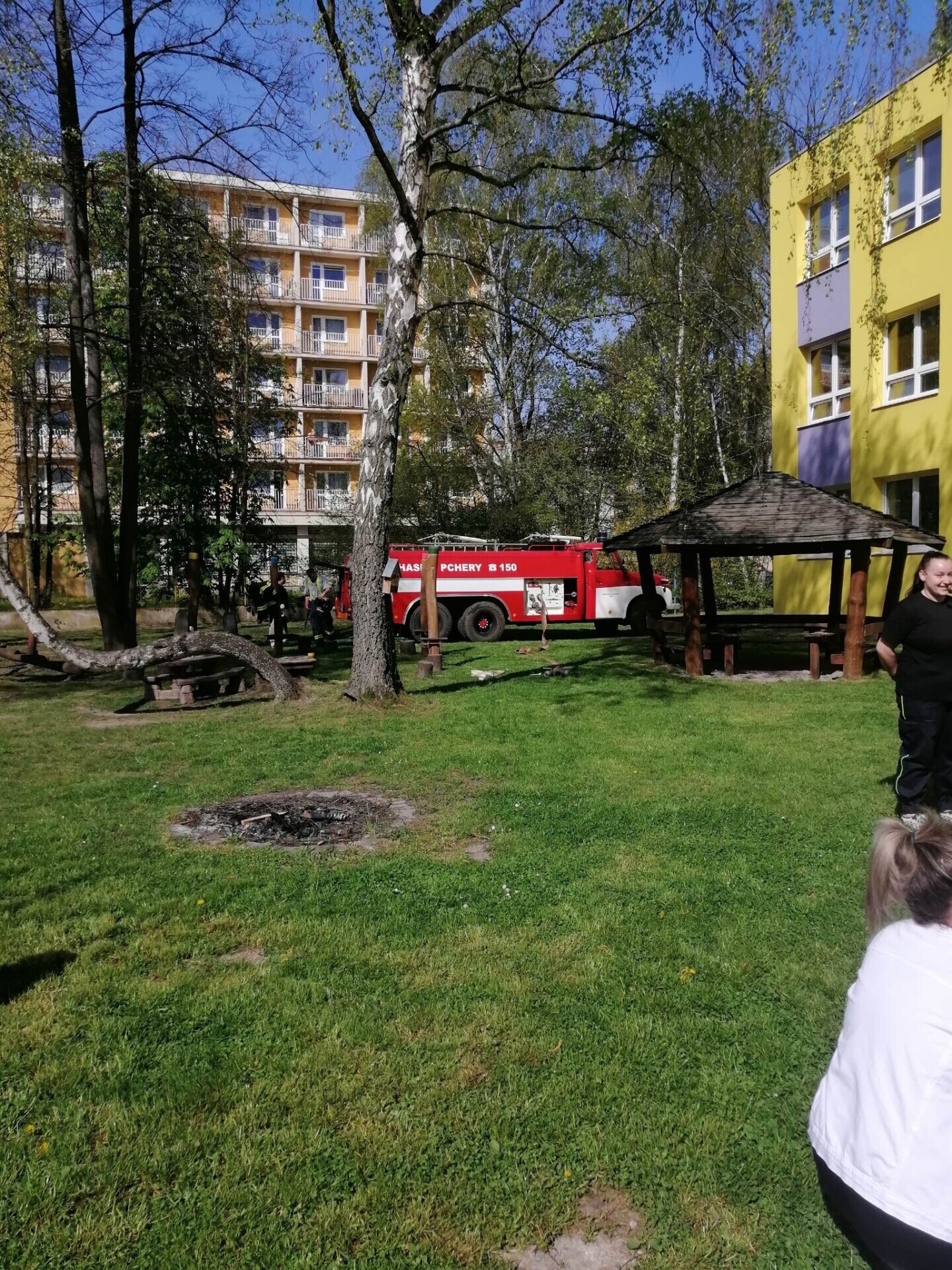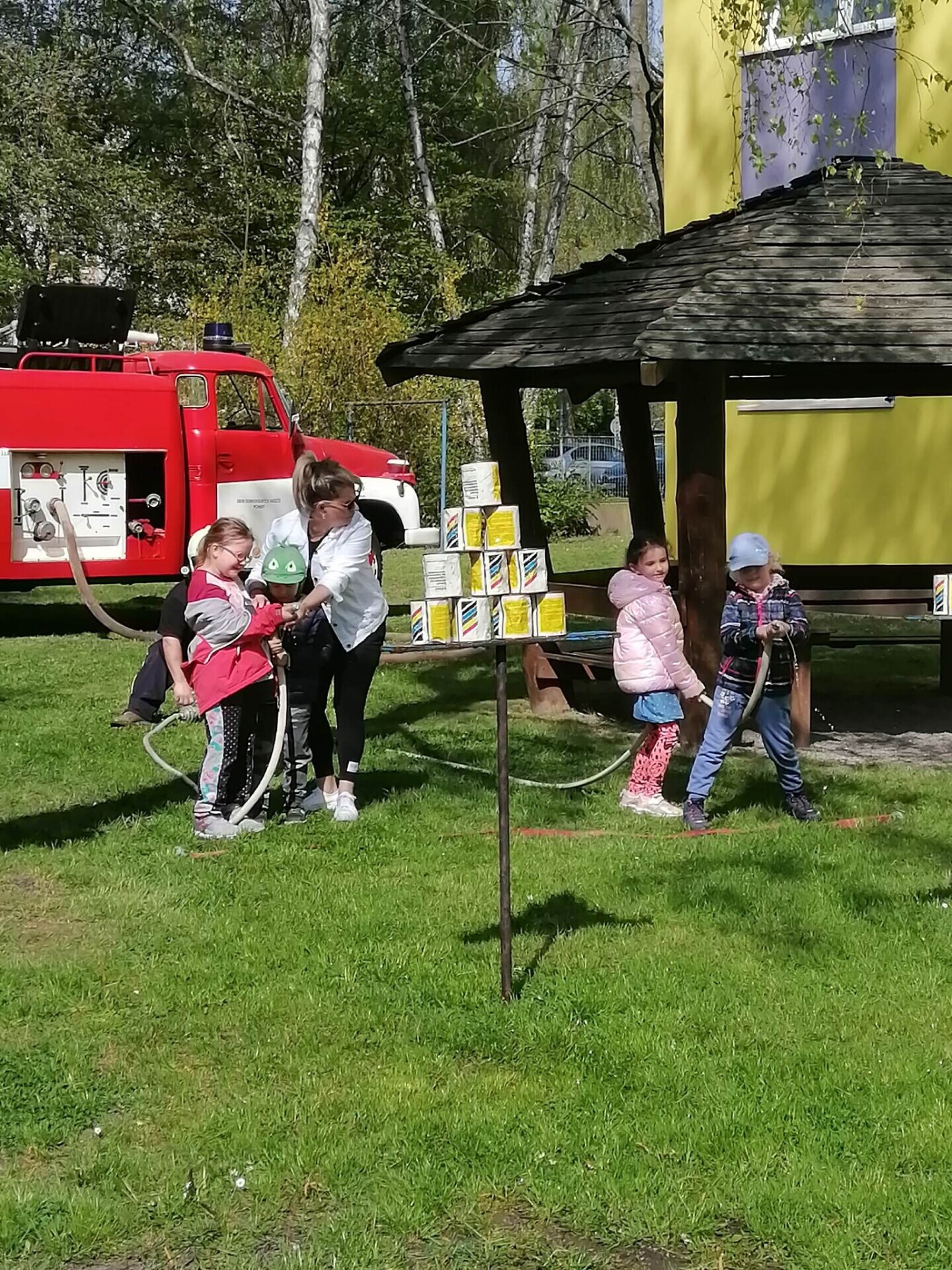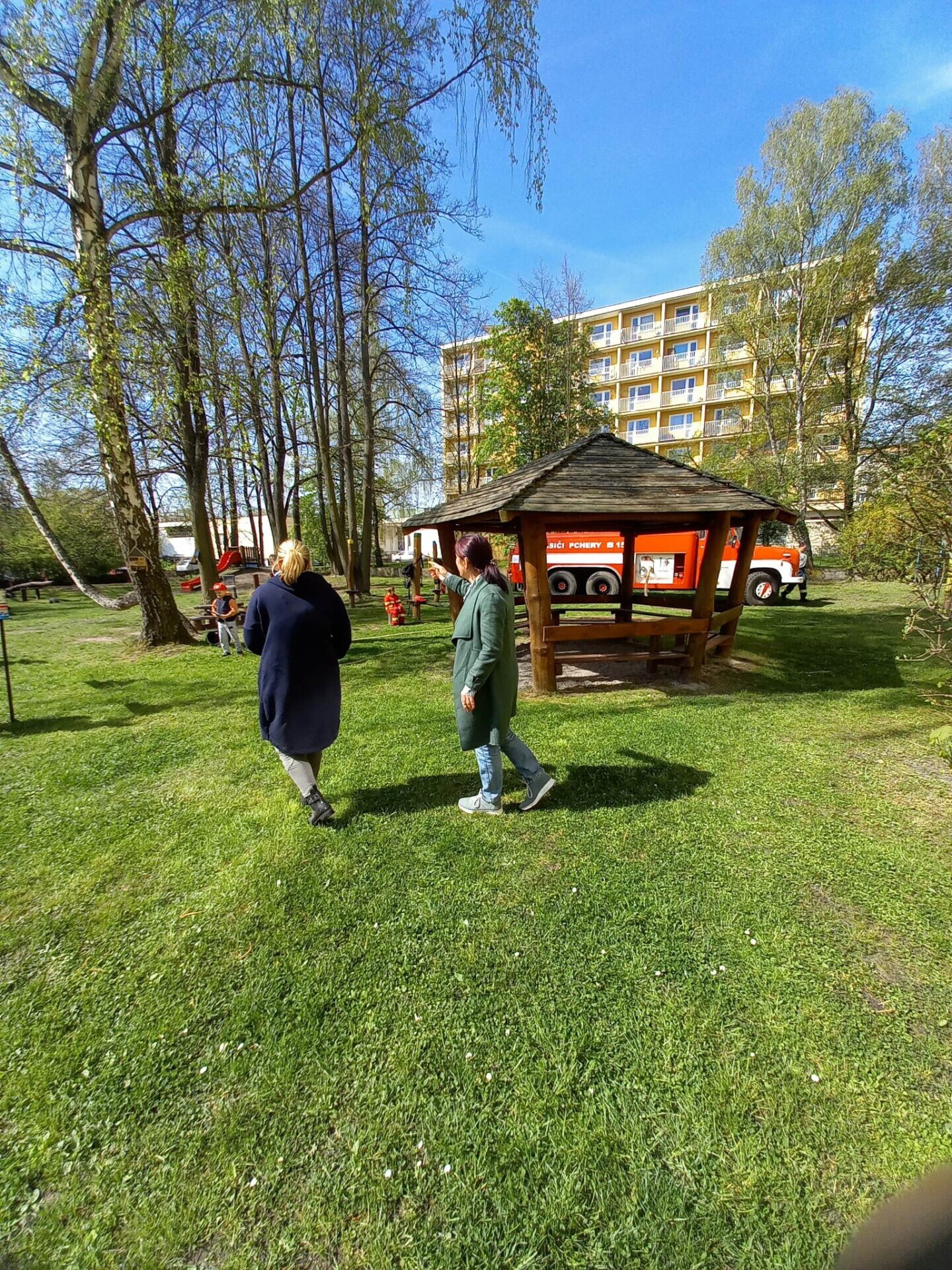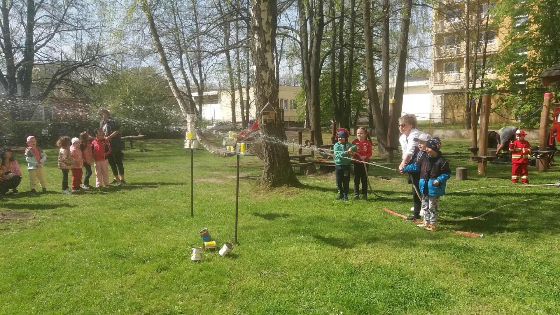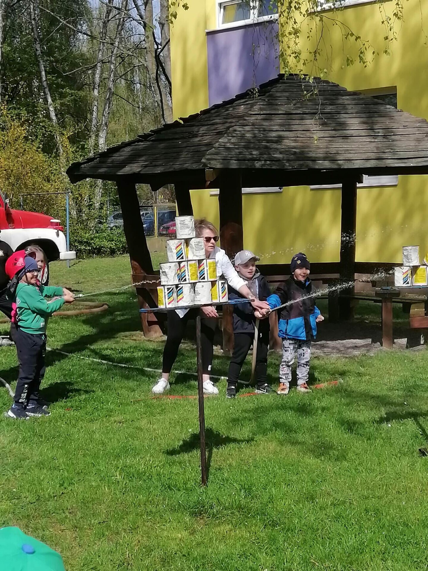 Den hasičů- dobrovolní hasiči z Pcher na školní zahradě