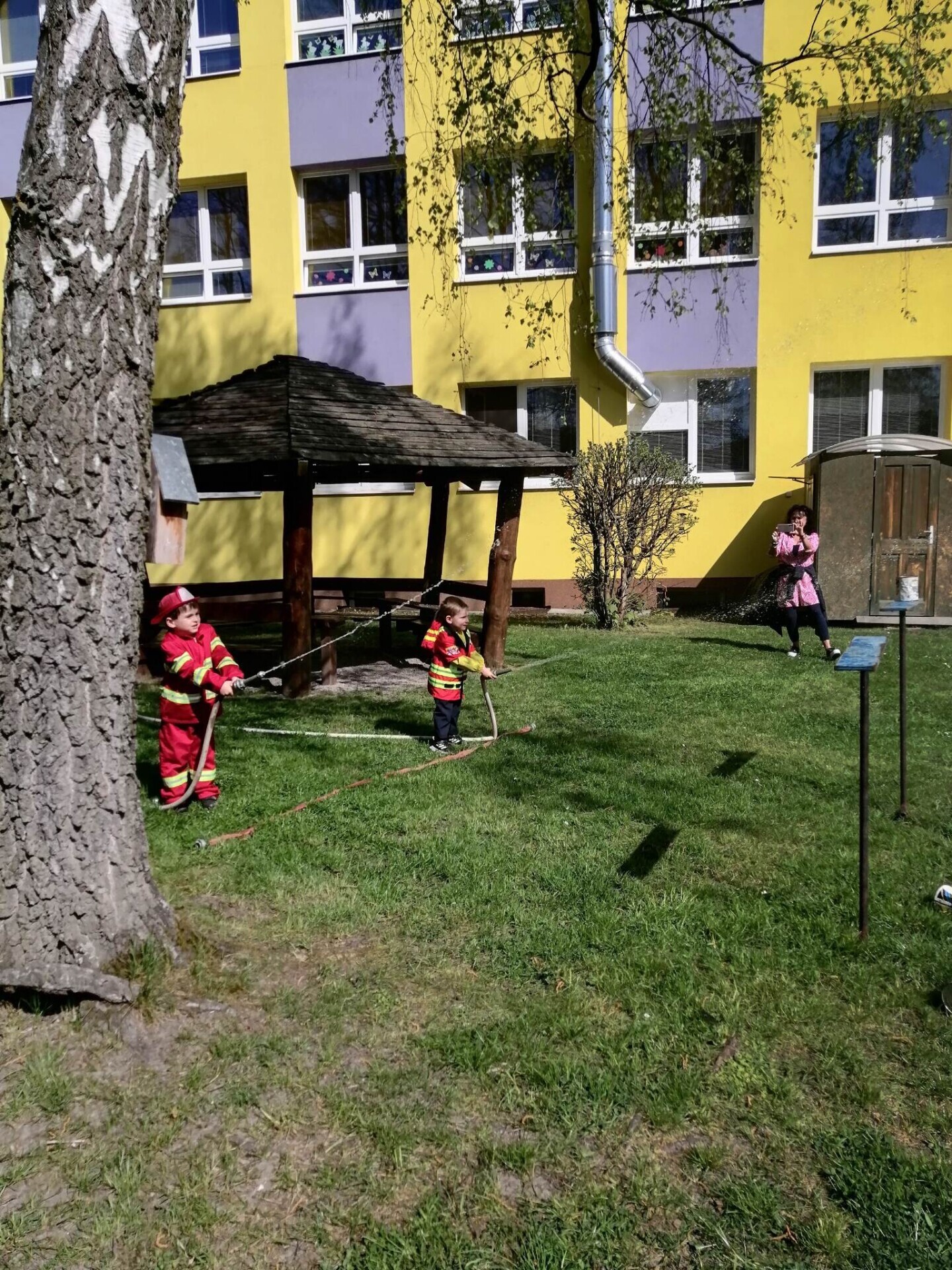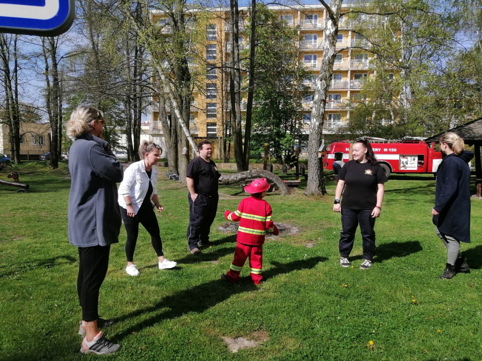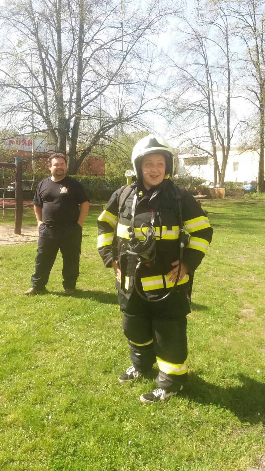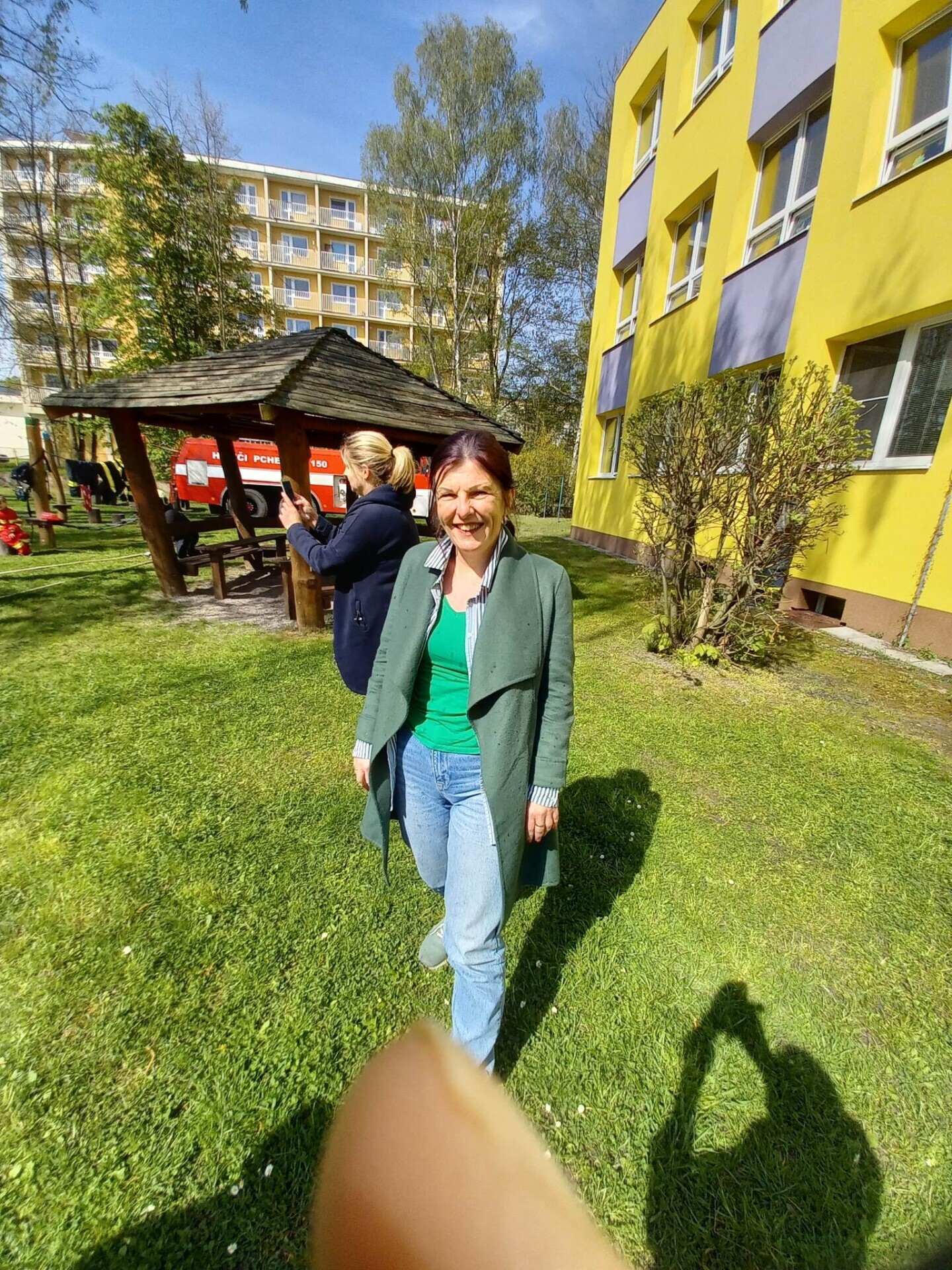Den hasičů- dobrovolní hasiči z Pcher na školní zahradě