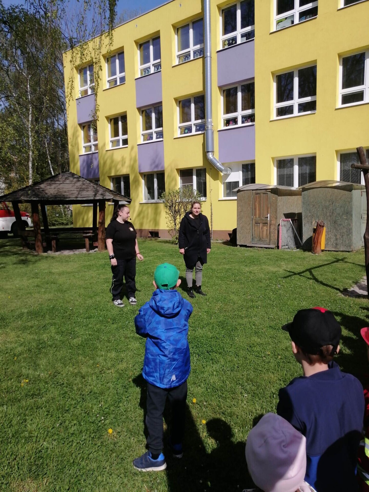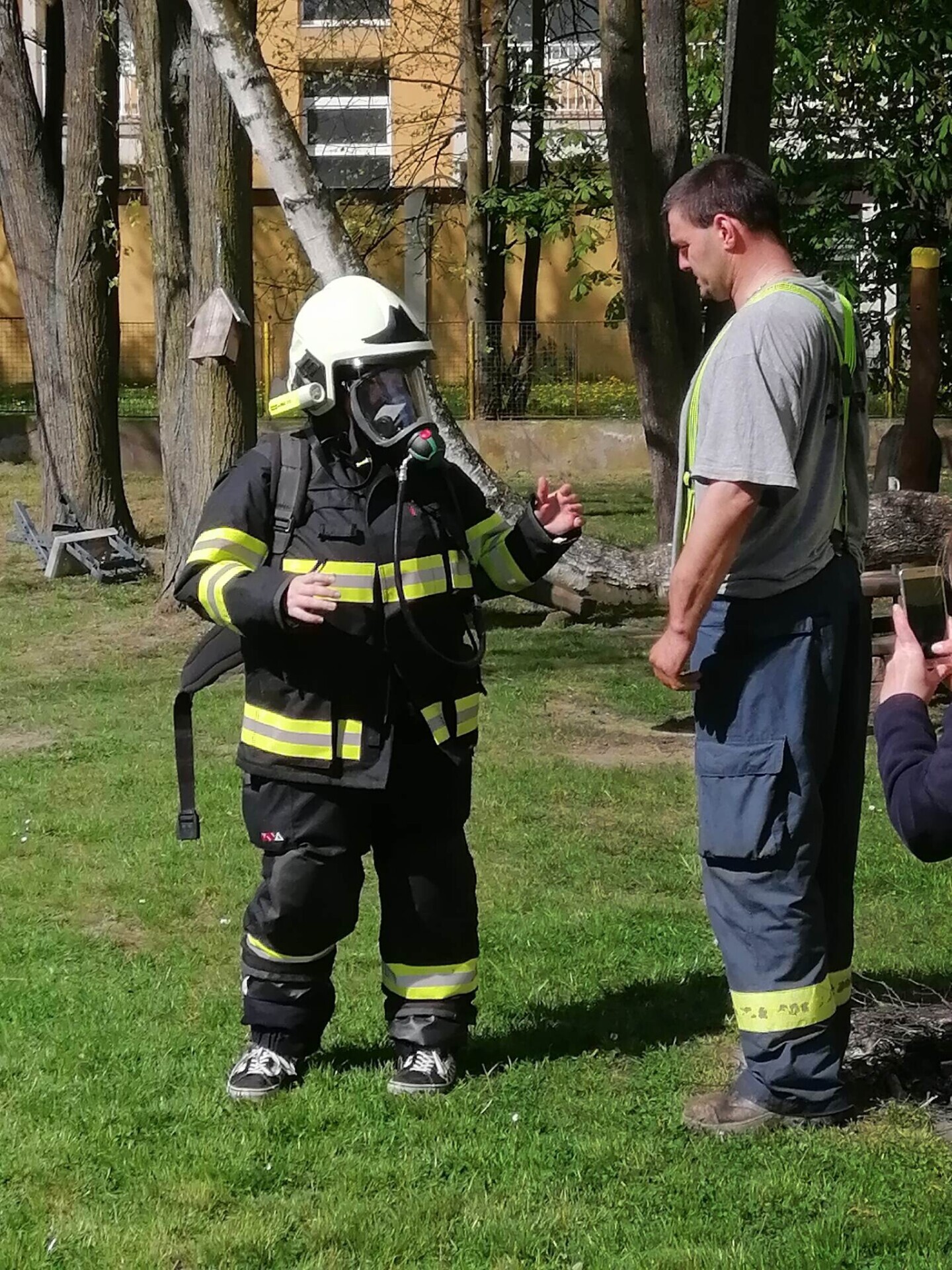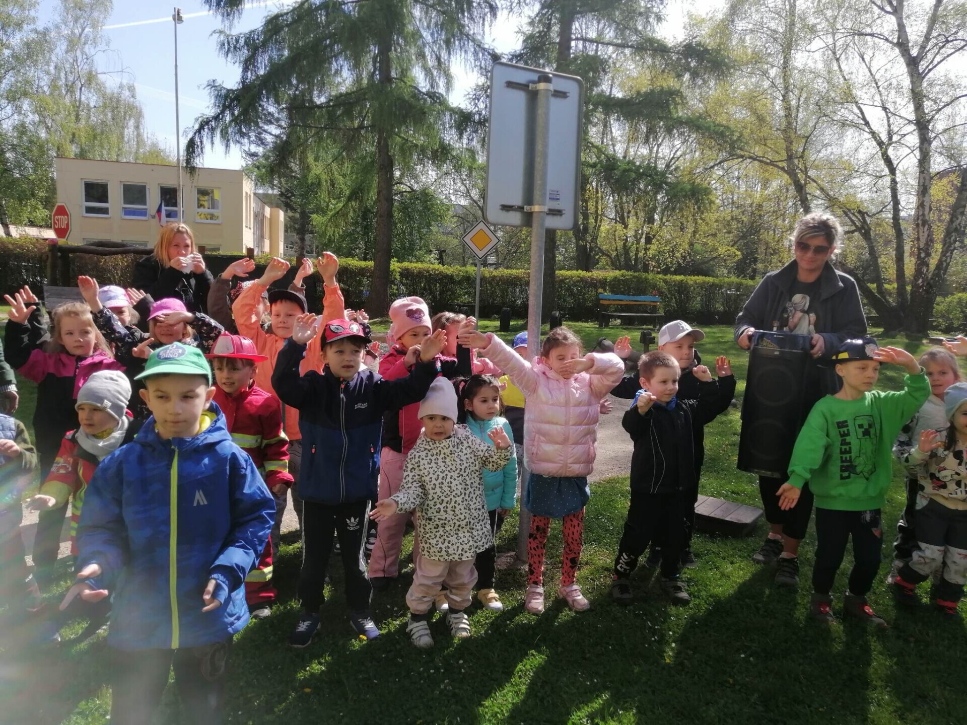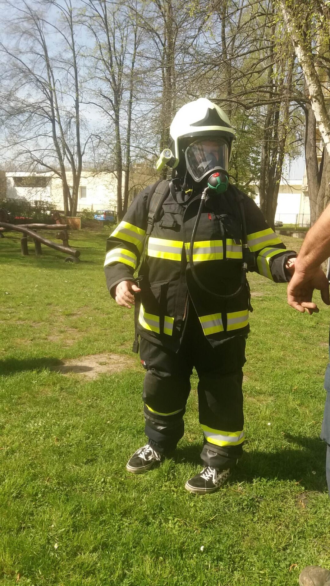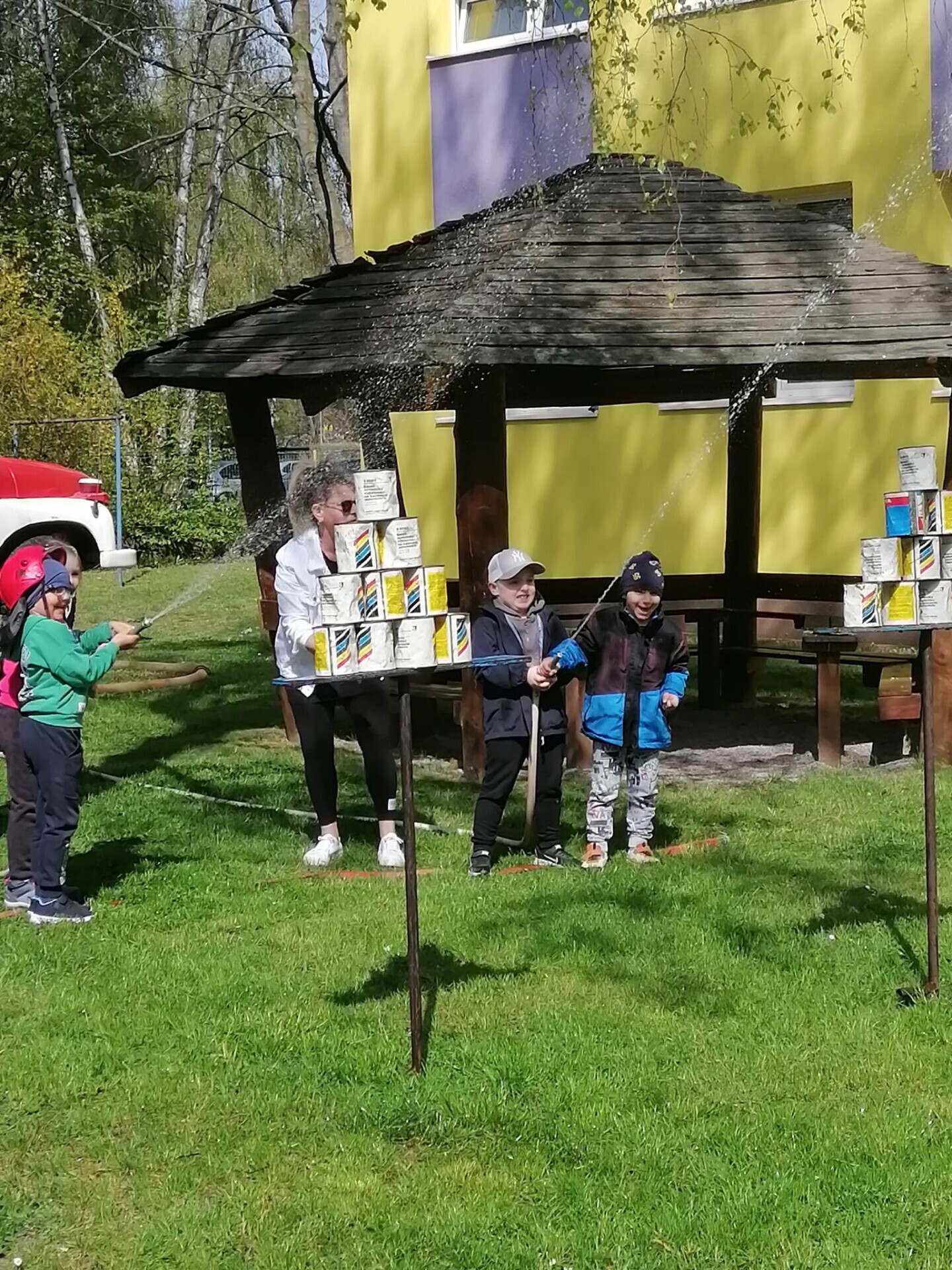 Den hasičů- dobrovolní hasiči z Pcher na školní zahradě