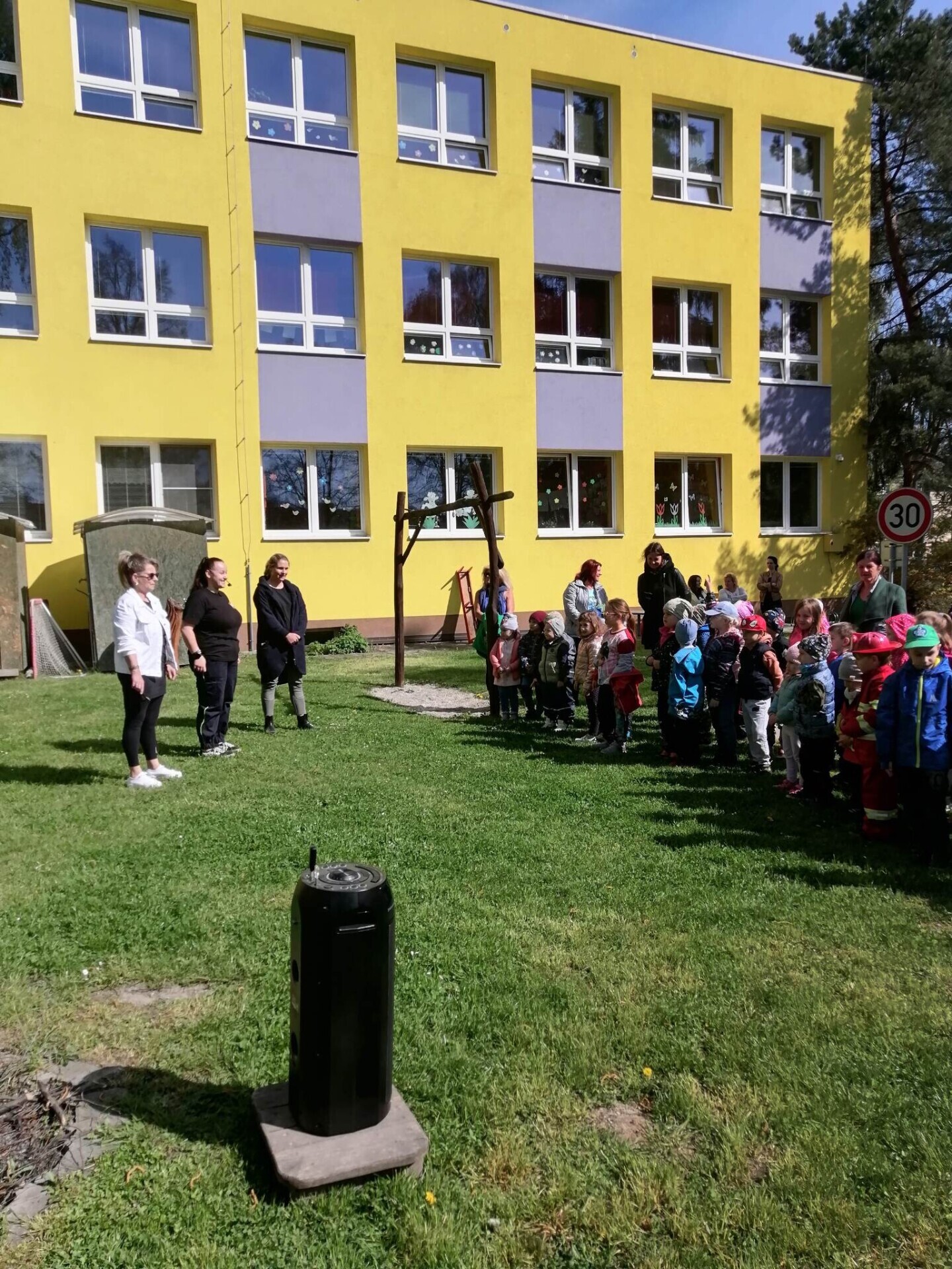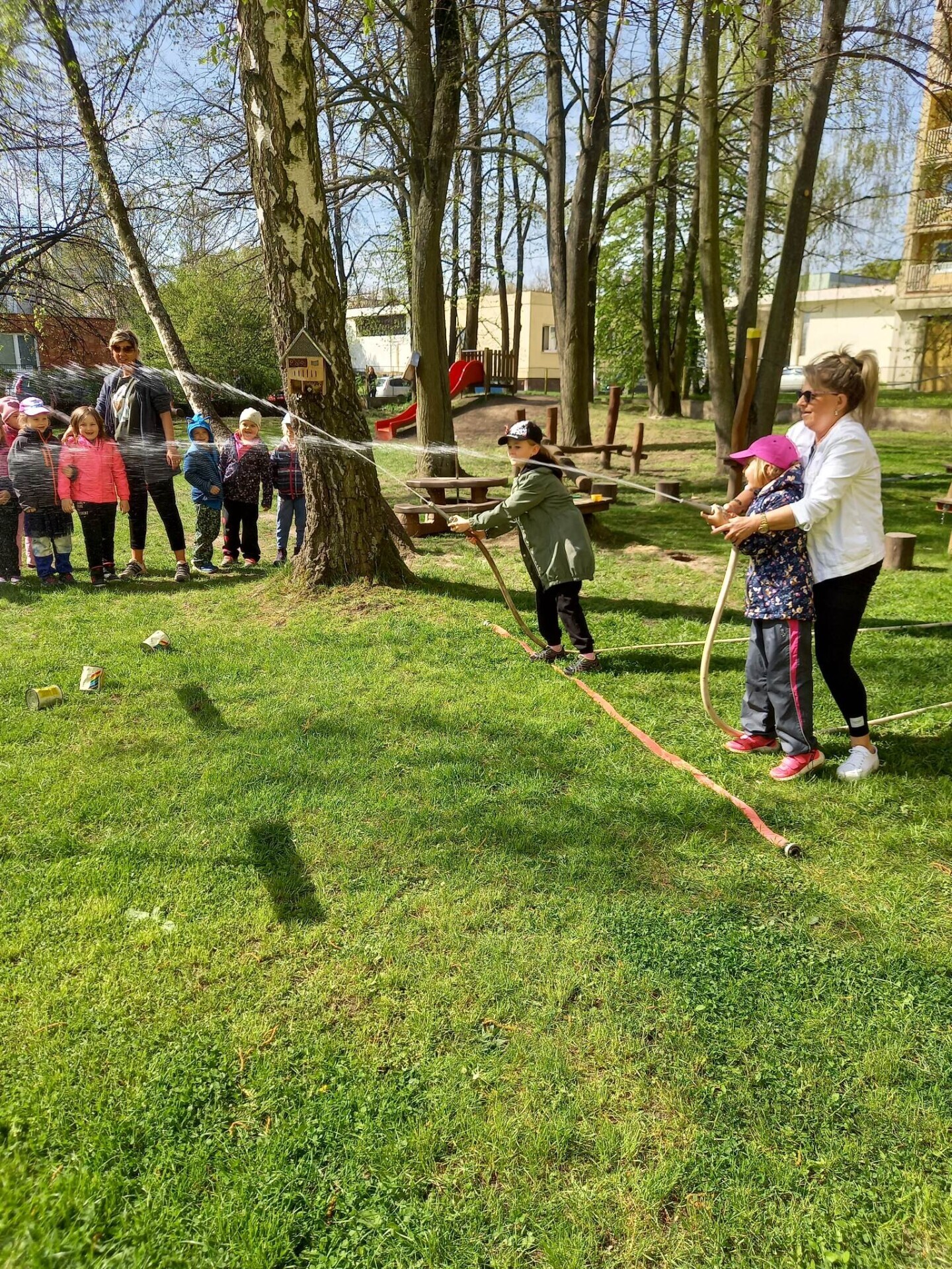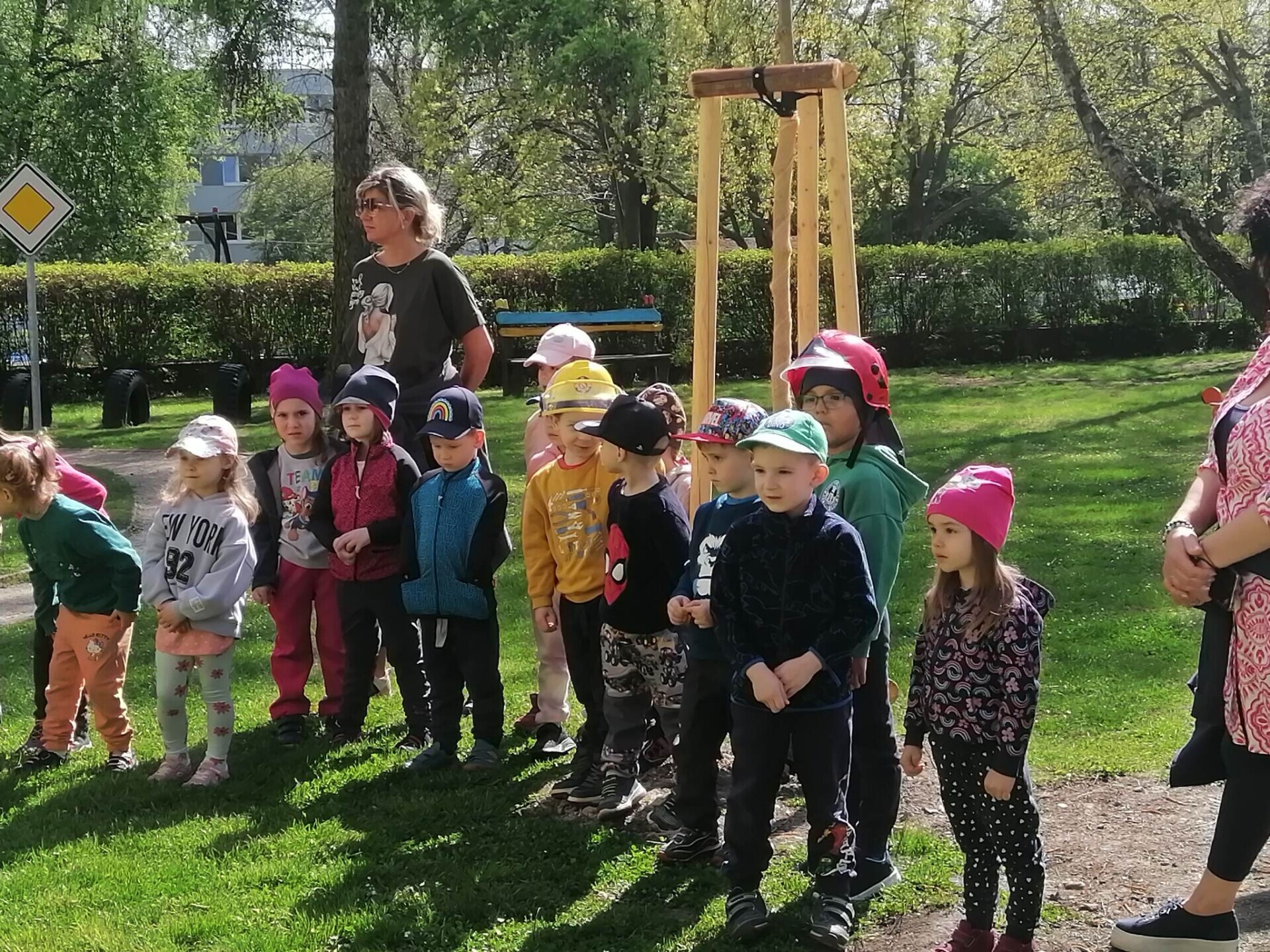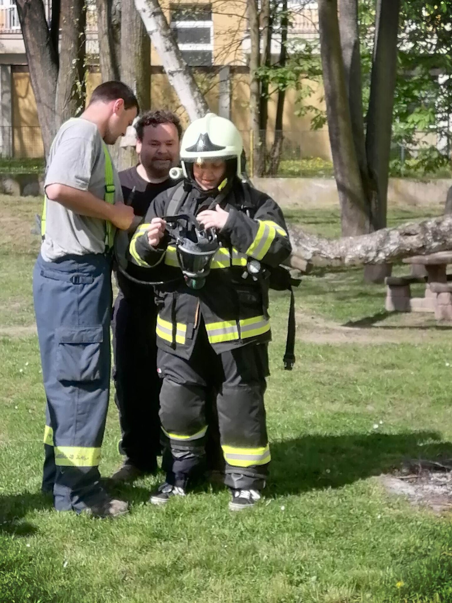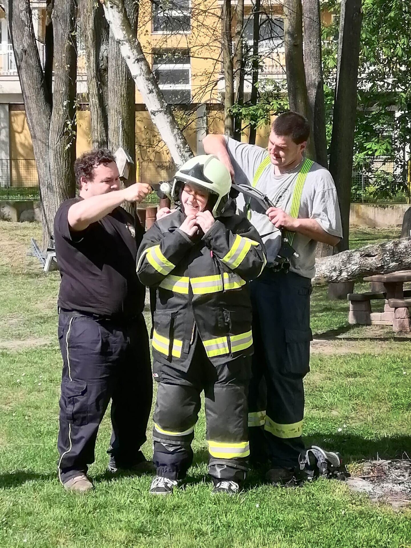 Den hasičů- dobrovolní hasiči z Pcher na školní zahradě