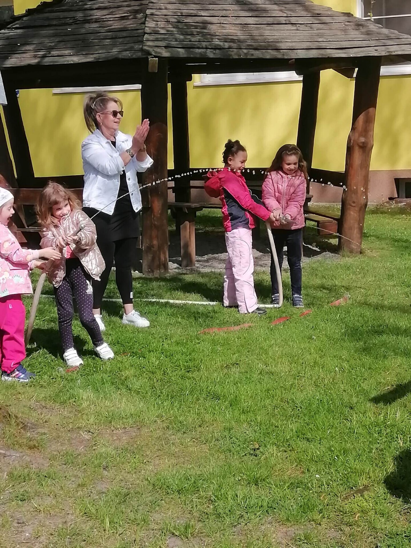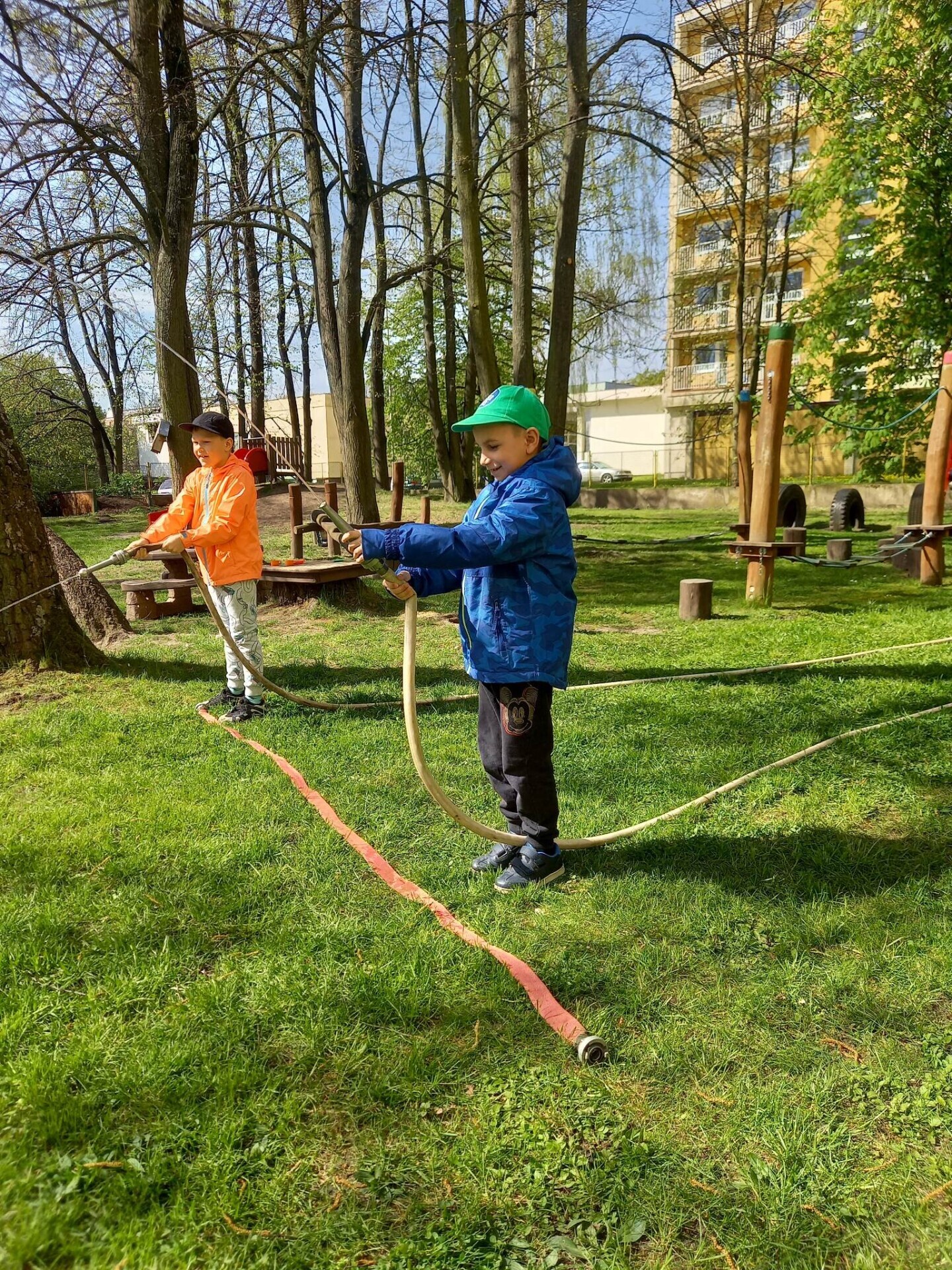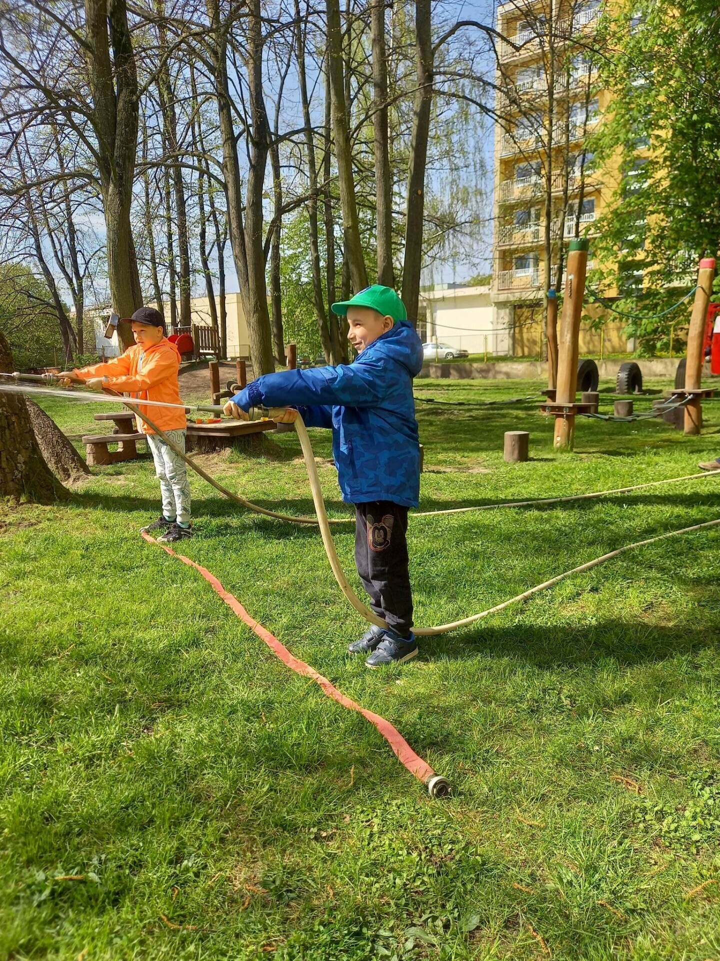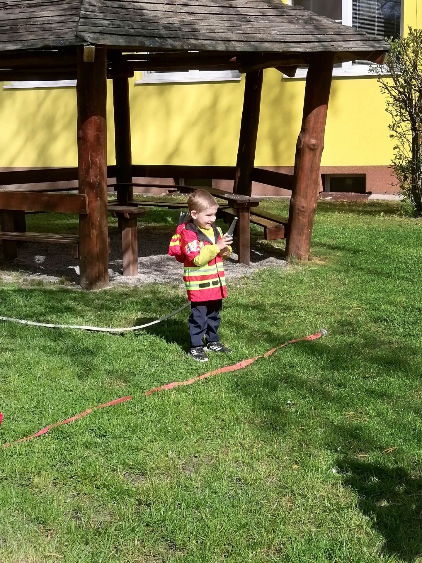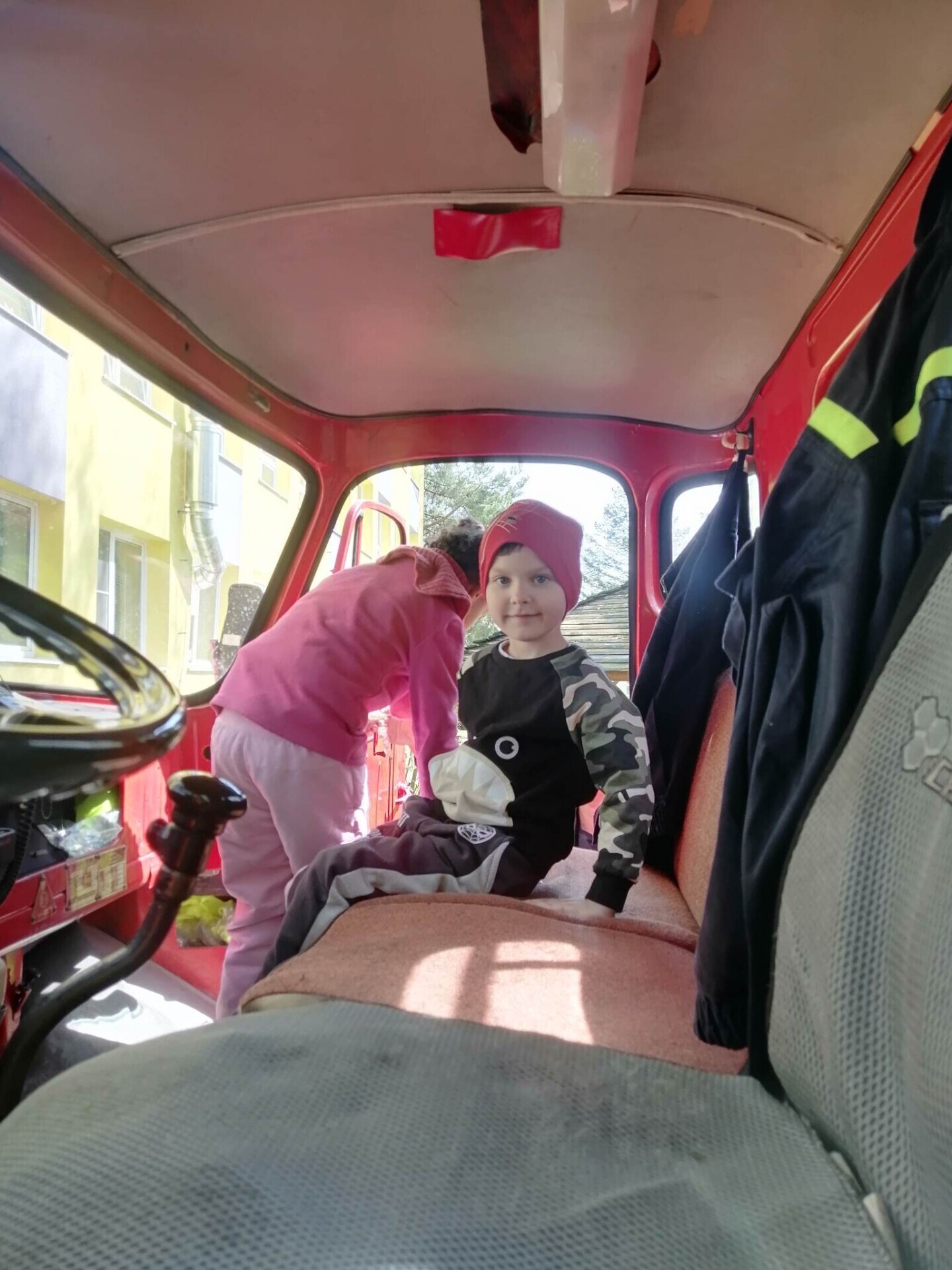 Den hasičů- dobrovolní hasiči z Pcher na školní zahradě