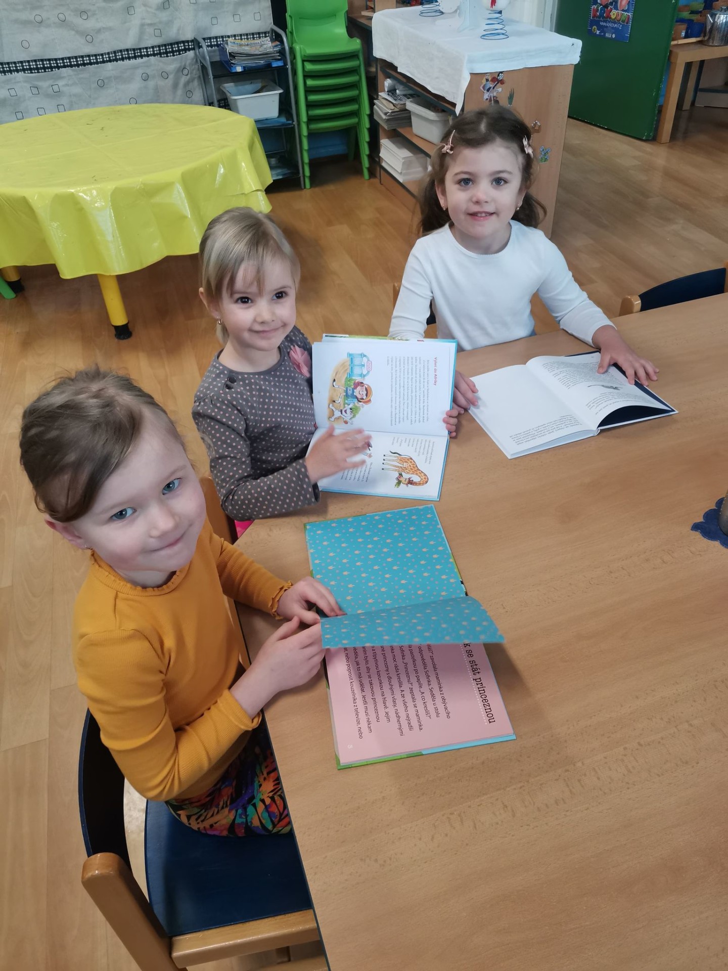 Děti si přinesly své nejoblíbenější knížky :) ...povídaly nám o čem je jejich knížka :) seznámili jsme se s péčí o knihu a správným zacházením s knihou, zahráli jsme si na knihovnu a zjistili, kde si můžeme knihy koupit :)