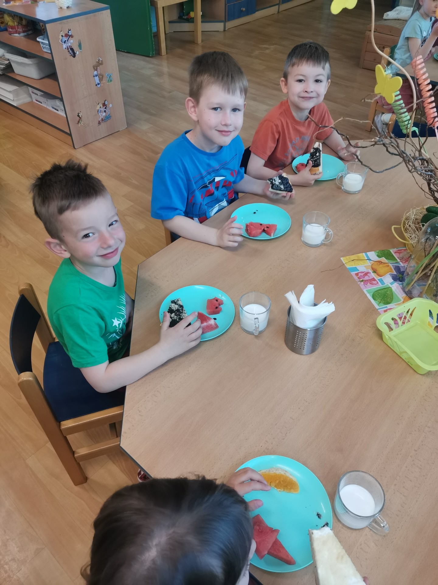 Den dětí- p. kuchařky nám upekly výborné koláče, přijela Myška Eliška, která si pro nás připravila program, zatancovali jsme si, zazpívali a zasmáli se. Nakonec jsme si vybarvili rybičky z keramiky, které jsme si vzali domů a společně s nimi i mnoho menších dárků.